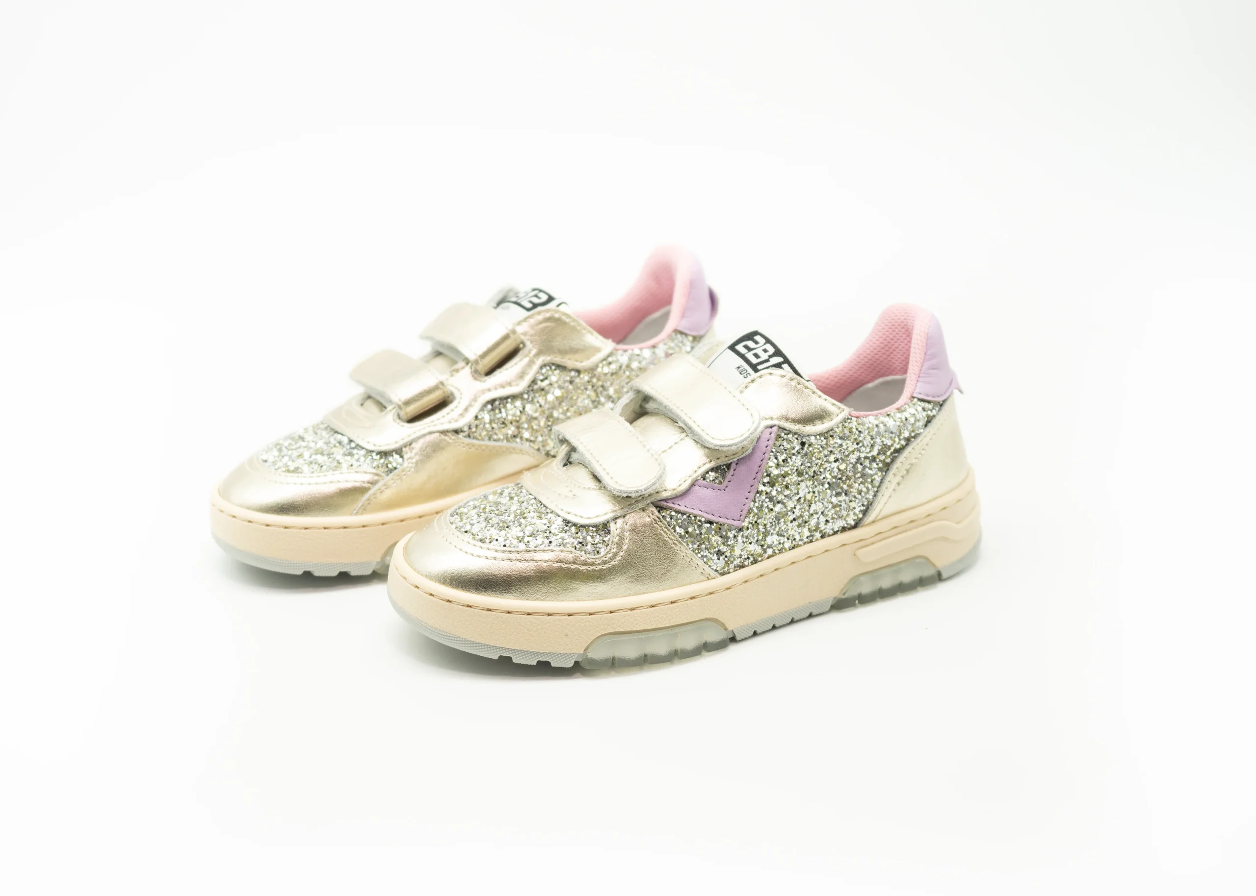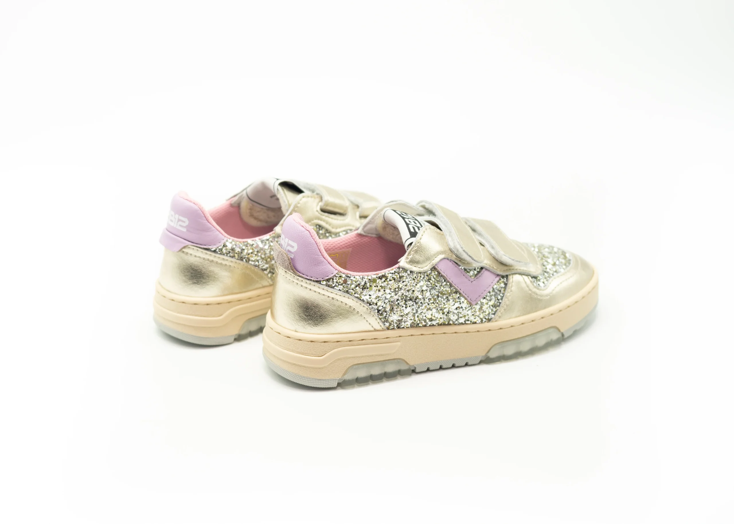 Sneakers HYPER in pelle con inserti in glitter , chiusura con doppio strappo , plantare in vera pelle , suola in gomma antiscivolo