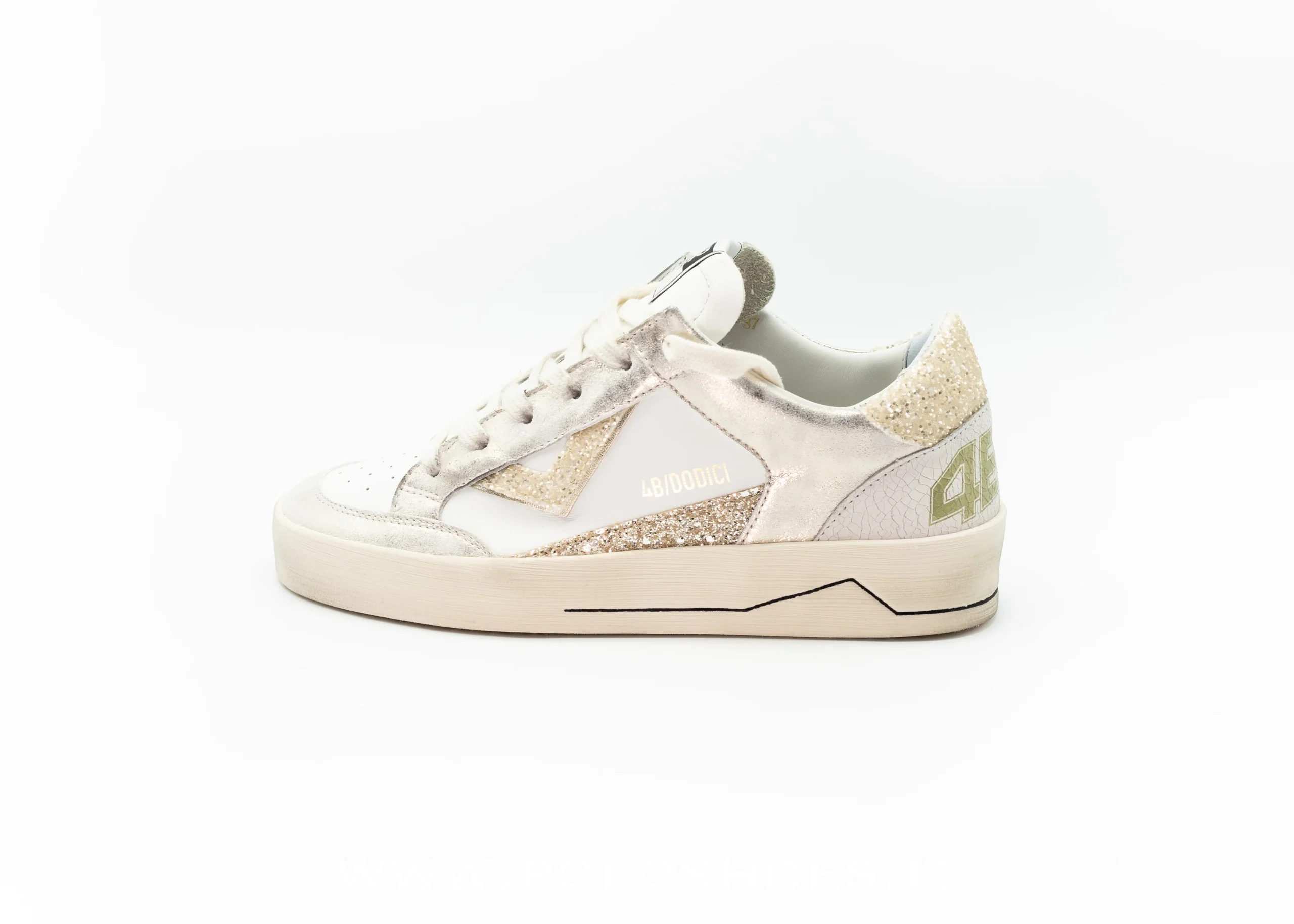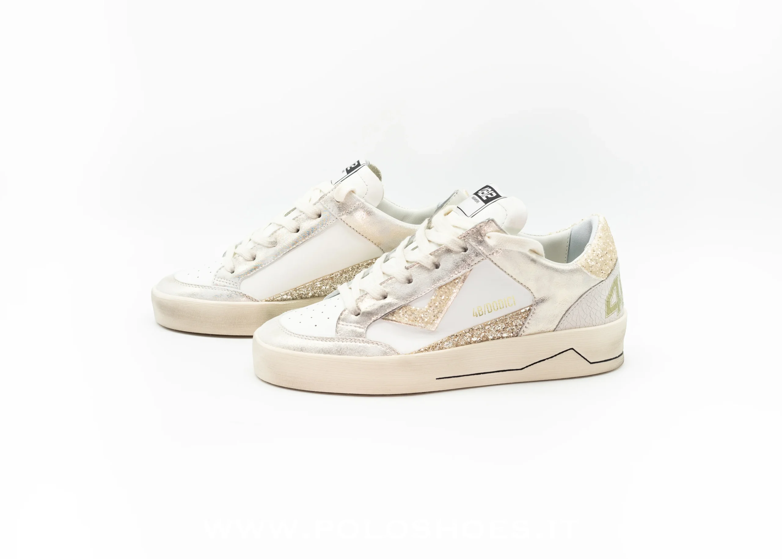 Sneakers in pelle con inserti a contrasto in pelle laminata e glitter, suola in gomma fasciata effetto vintage , altezza 35mm made in italy art. KYLE D859
