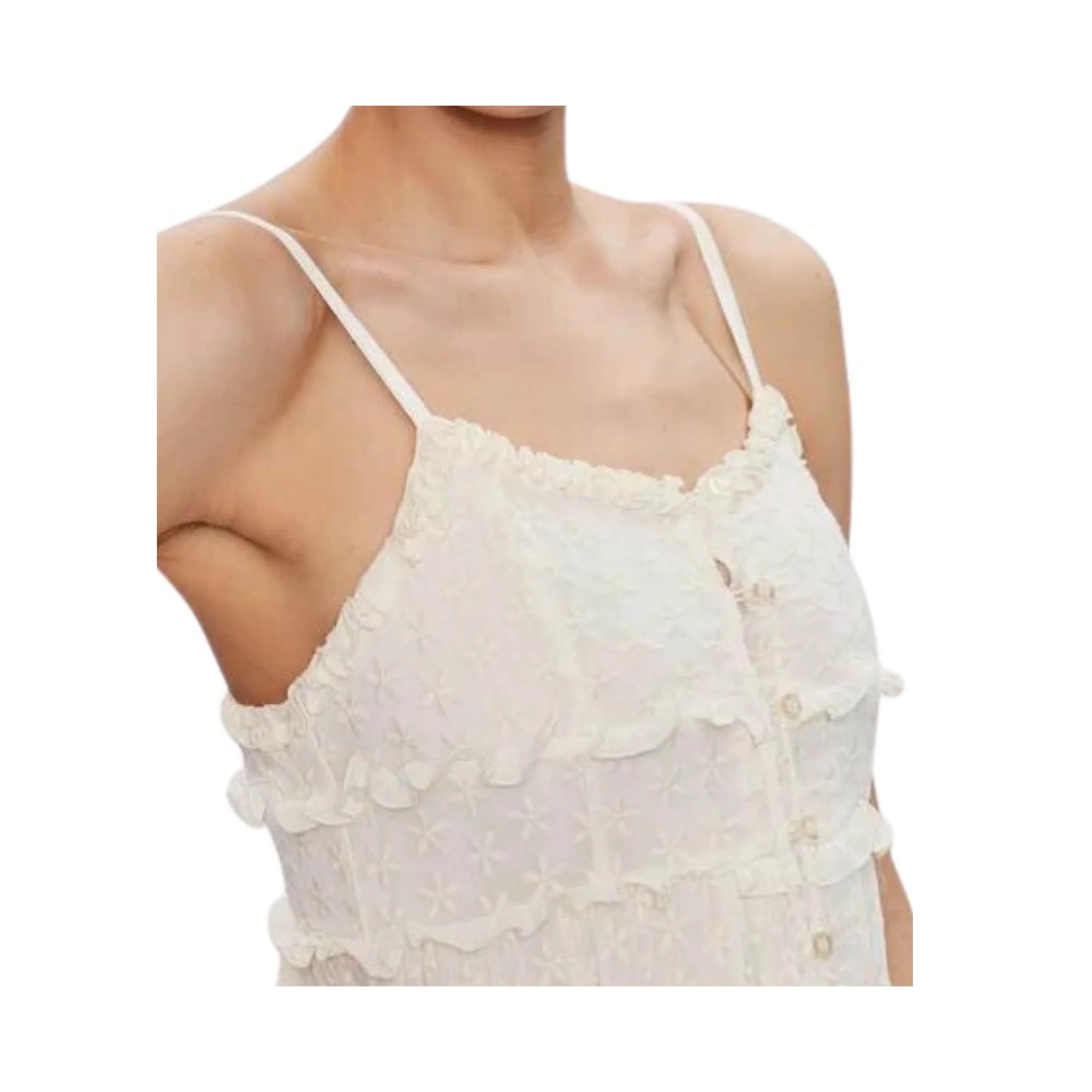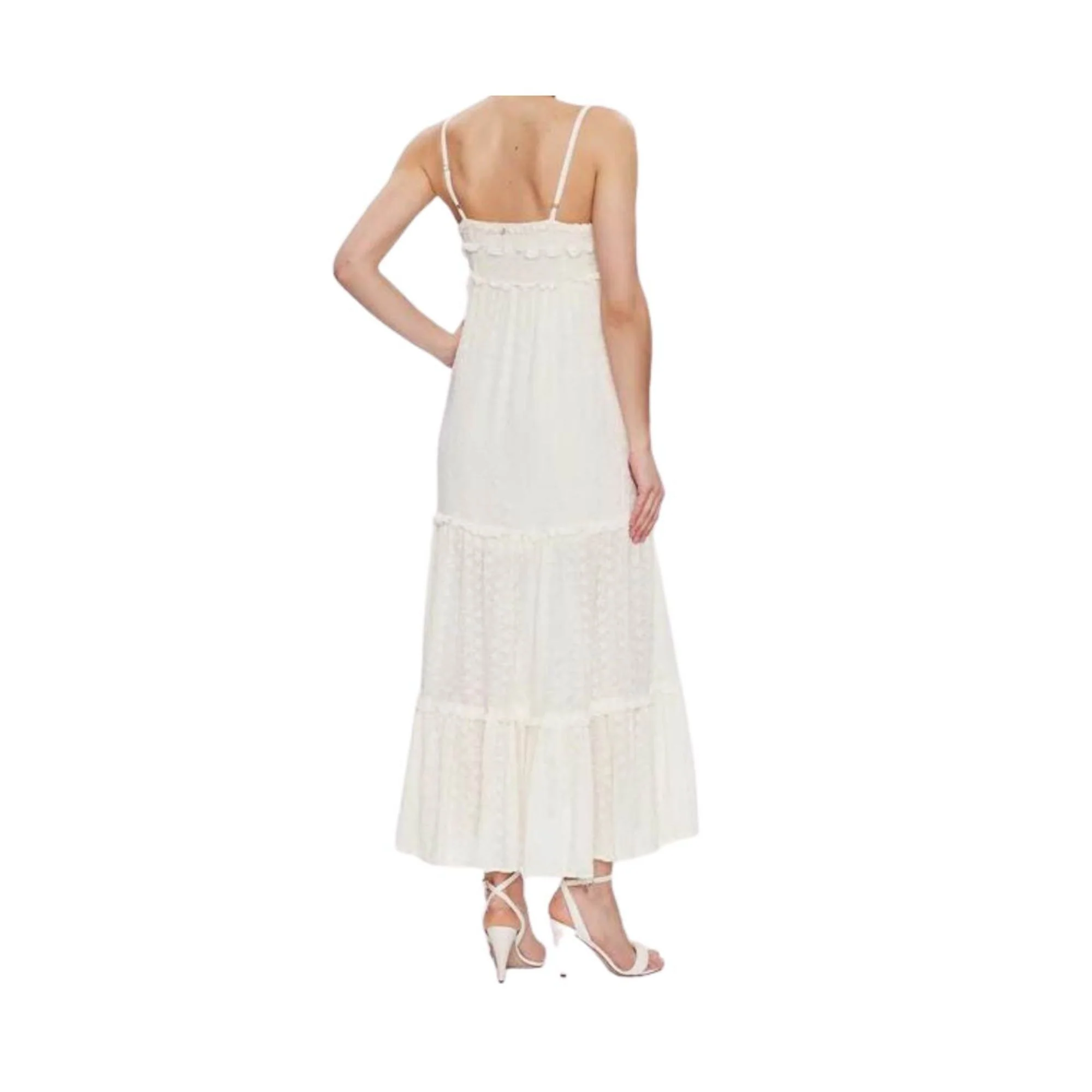 L’Abito Donna firmato Liu Jo è perfetto per affrontare al meglio le serate estive più calde grazie alle sue bretelle sottili, al tessuto fresco ed all’ampia gonna lunga ricamata con meravigliosi fiori per un look senza tempo. Dettagli Composizione: 100% PoliestereRicamo florealeBottoni sul davantiBretelle regolabili Merletti che creano le balze Cod. WA3035T5960