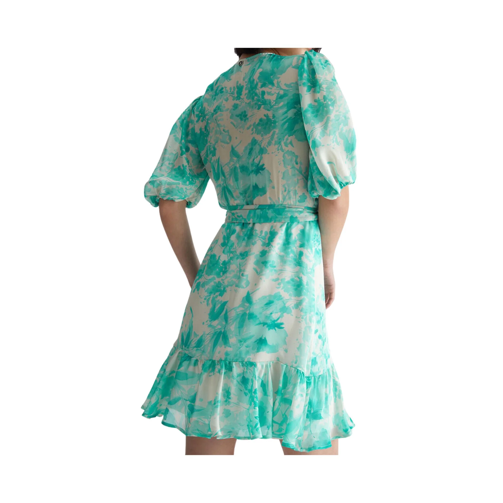 Abito Donna firmato Liu Jo con fantasia floreale all over, a maniche corte, con scollo a v e dotato di fusciacca in vita. Un abito raffinato e versatile, perfetto per essere abbinato ad un sandalo alto o basso. Dettagli Composizione: 100% Poliestere Motivo floreale Scollo a v Maniche corte lievemente a palloncino Fusciacca in vita Balza sul fondo Vestibilità: Regular fit Cod. CA3425T2514