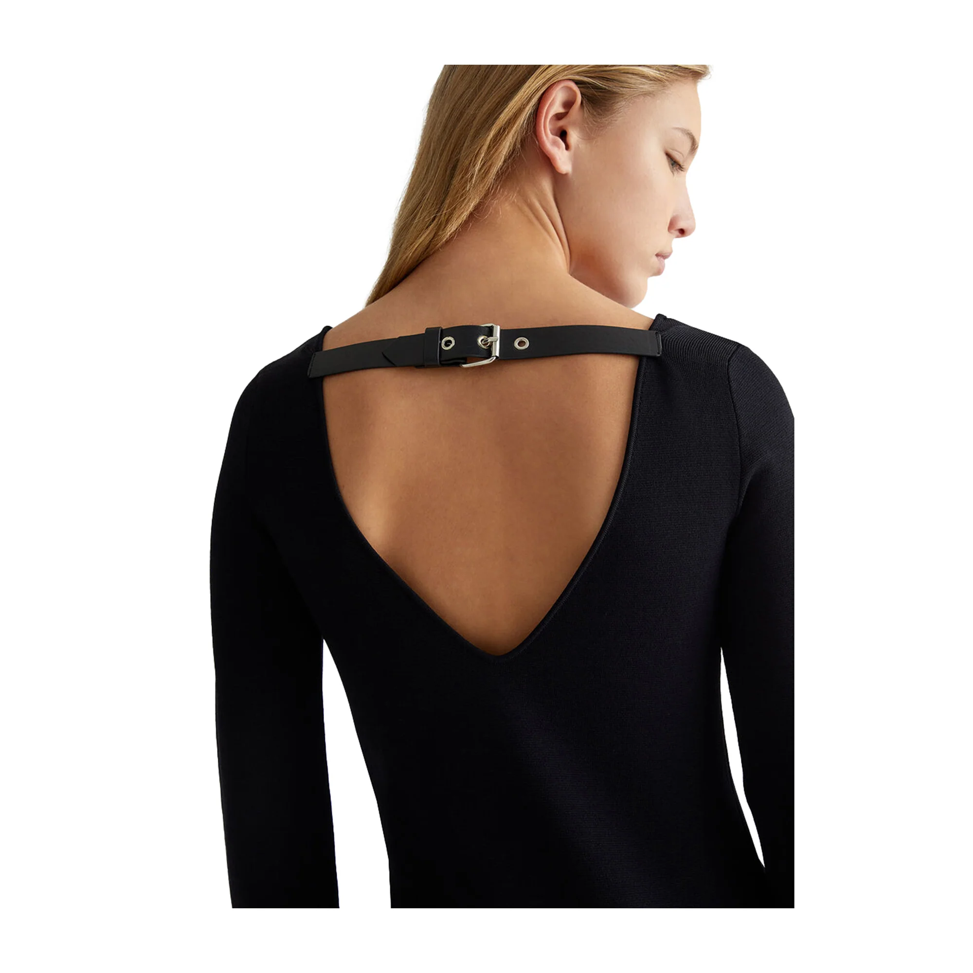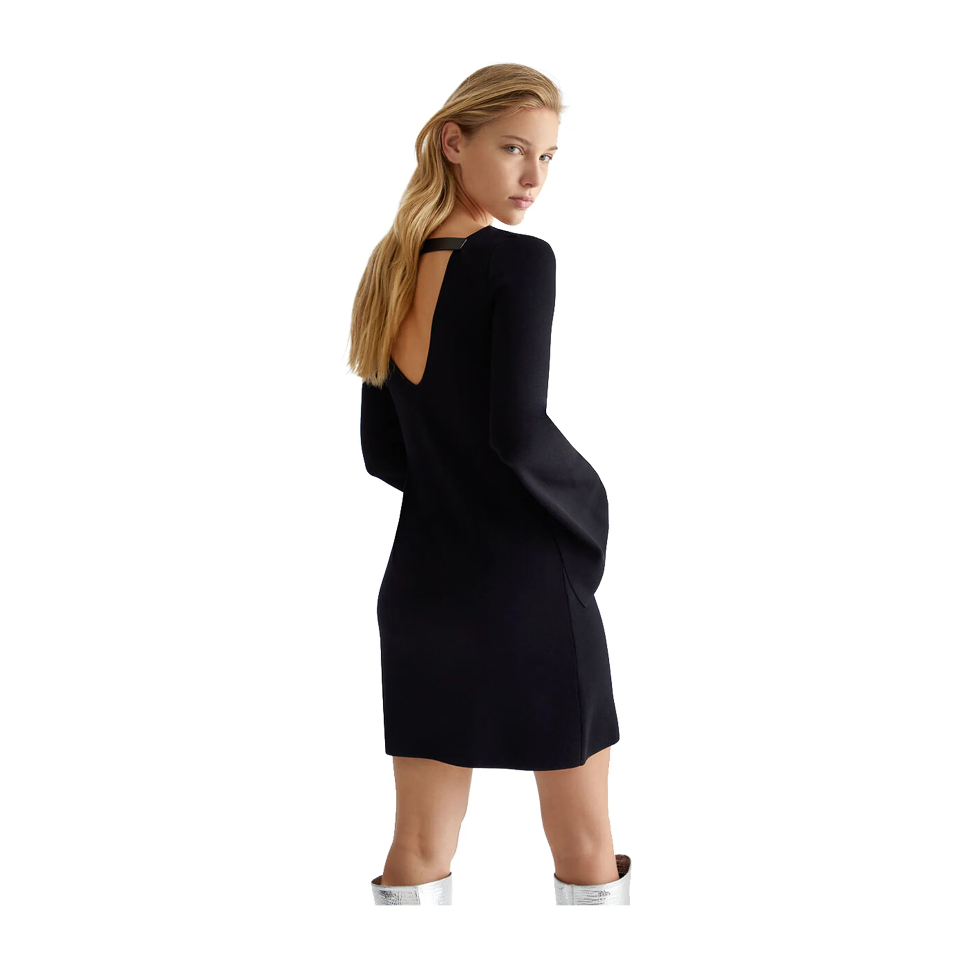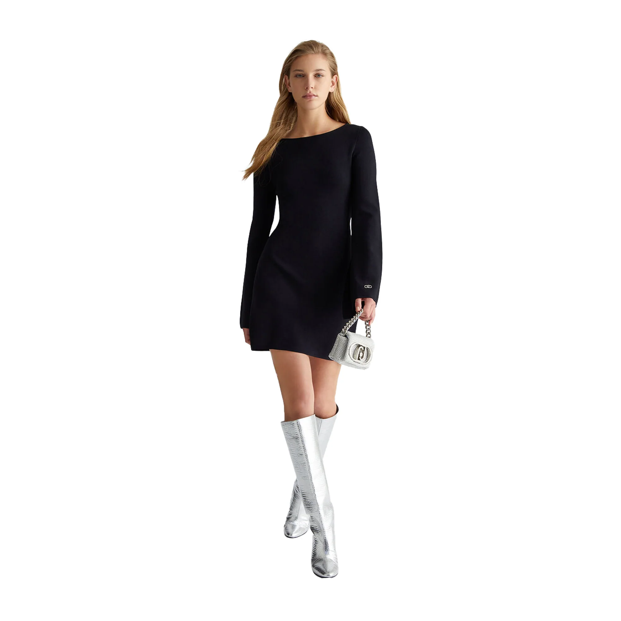 Un Abito versatile e chic da indossare in molte occasioni firmato Liu Jo! La cintura regolabile sulla schiena crea una silhouette snella, mentre il morbido tessuto nero e lo scollo a barca sono perfetti per le giornate di sole. Il dettaglio del motivo a V sul retro e il logo in metallo aggiungono un tocco di eleganza.