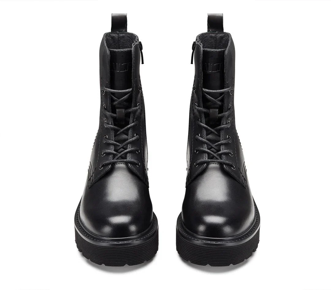 In pelle nera con chiusura a stringhe e suola rinforzata altezza suola 5cm.