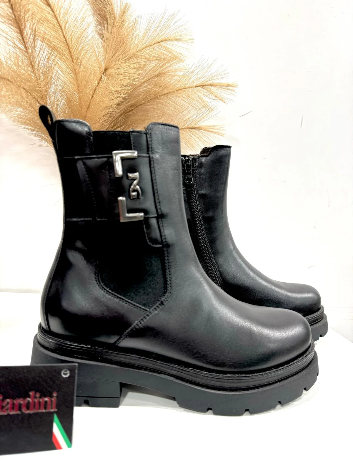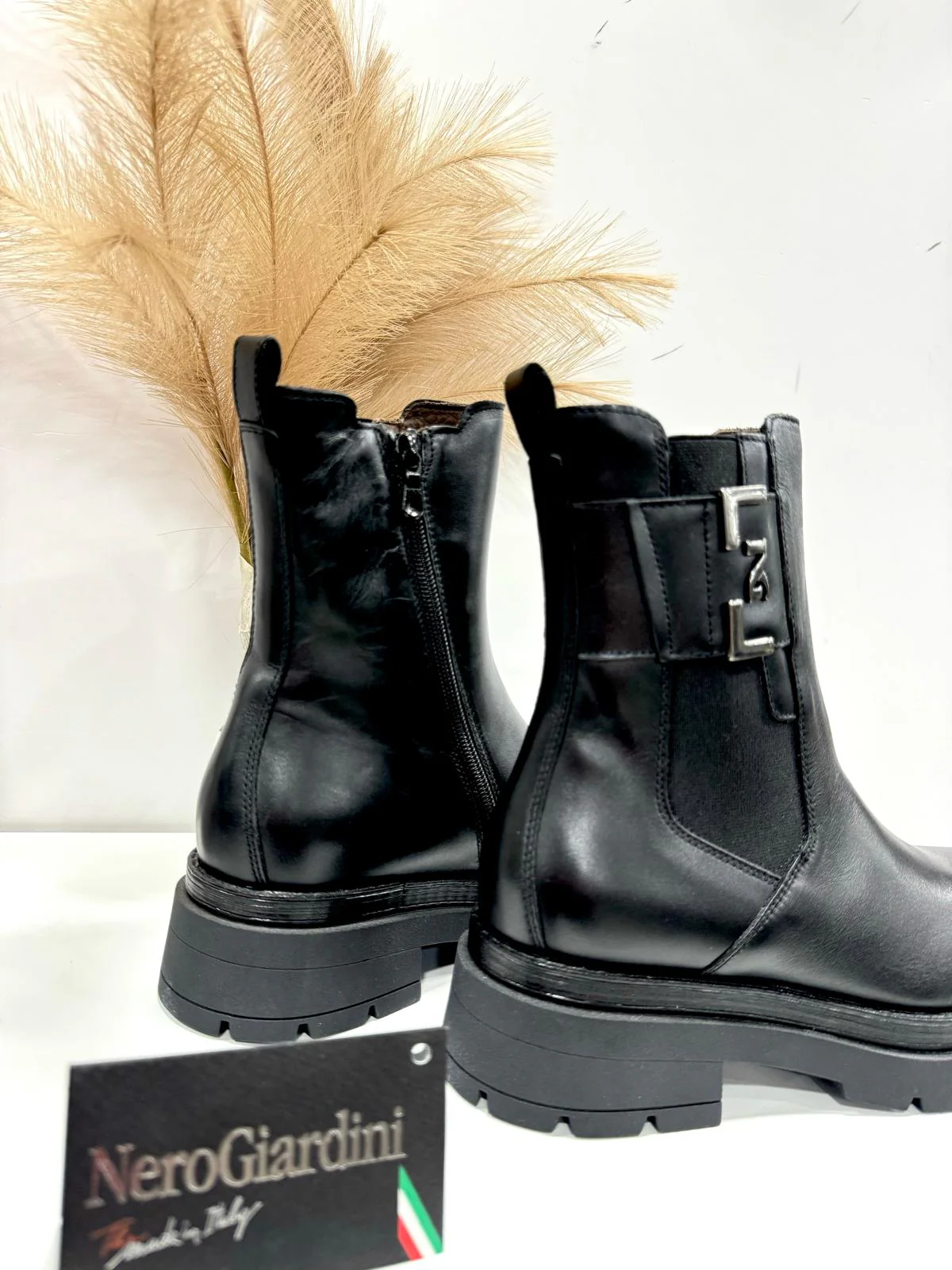 Stivaletti NeroGiardini, personalità e stile unico. Le calzature NeroGiardini sono realizzate in Italia, utilizzando materiali di qualità e le più avanzate tecniche di lavorazione. Ogni scarpa è il risultato della esperta competenza artigiana tramandata di generazione in generazione. Tutti i modelli sono progettati per offrire comodità e versatilità in ogni momento della giornata, dal lavoro alla serata speciale. Il reparto stile NeroGiardini è costantemente alla ricerca di nuove tendenze per offrire calzature sempre attuali e originali. NeroGiardini propone anche una collezione di borse, perfettamente abbinabili alle calzature, per un total look Made in Italy impeccabile. La produzione Made in Italy delle calzature NeroGiardini è sottolineata dal tricolore impresso sulle suole e sul packaging.