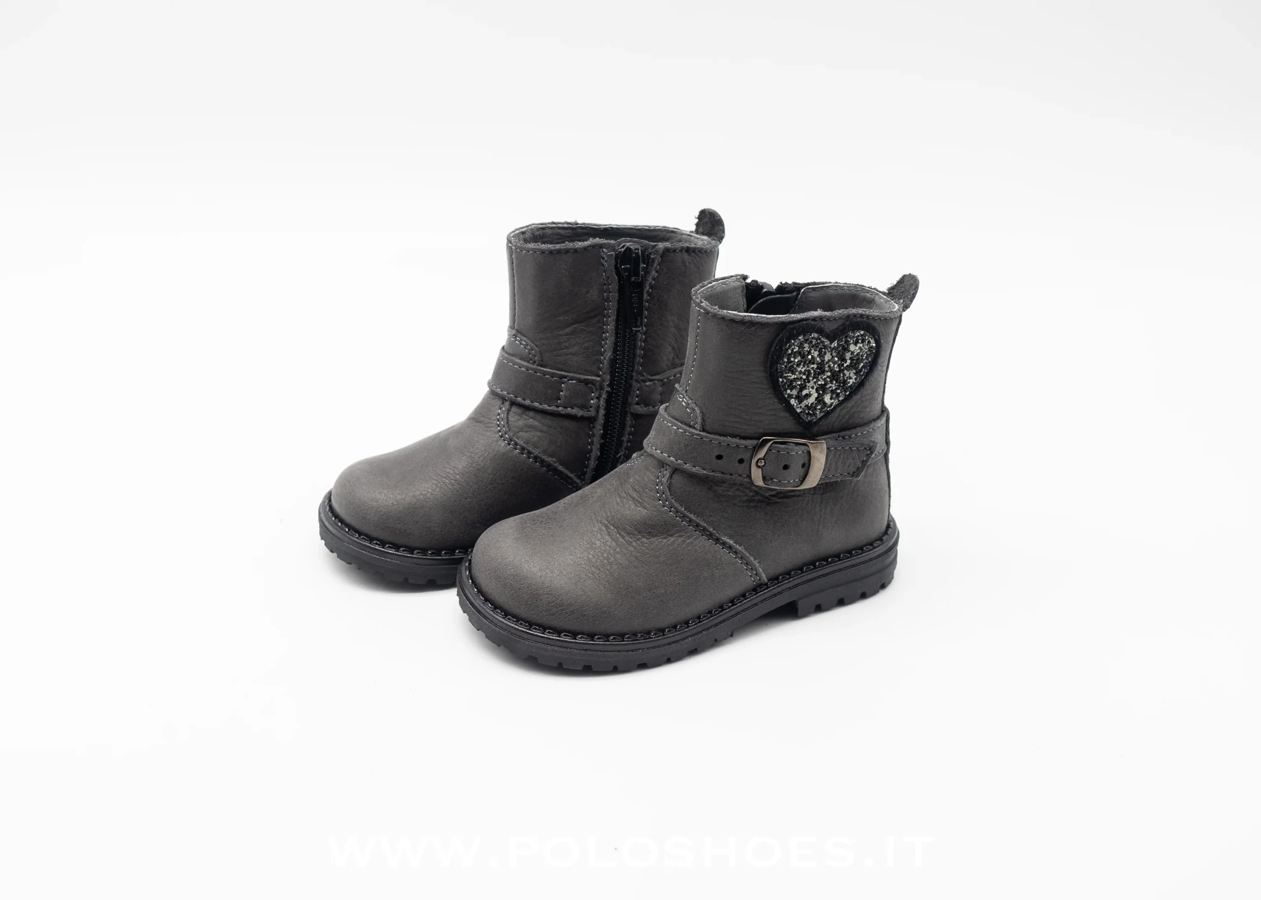 Stivaletto in pelle nabuc con cuore glitter applicato , chiusura con cerniera , suola in gomma