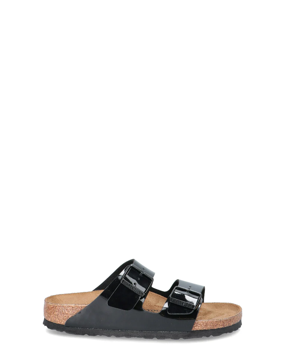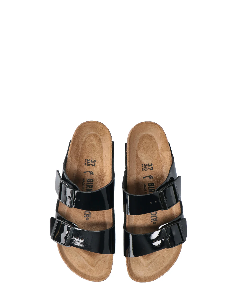 Plantare dalla forma anatomica in sughero e lattice Tomaia: Birko-Flor® con vernice Sottopiede: pelle scamosciata Suola: EVA Dettagli: cinturini con due fibbie di metallo regolabili individualmente “Made in Germany” Calzata stretta