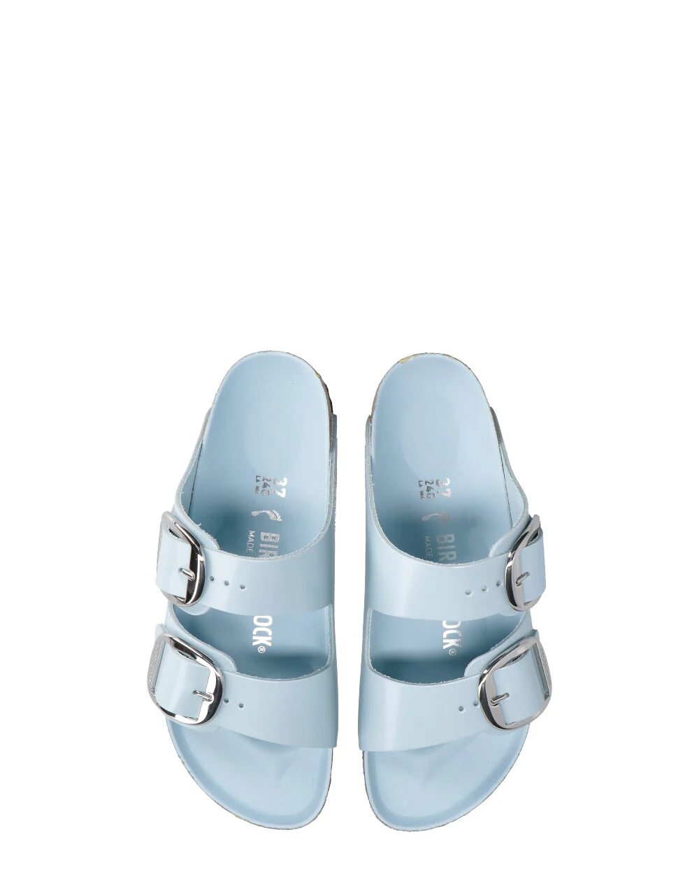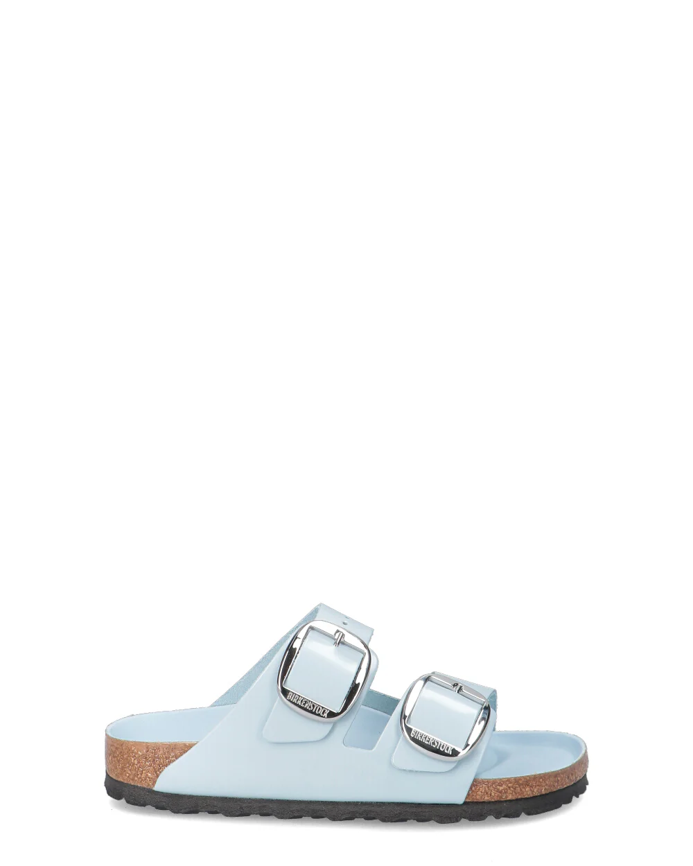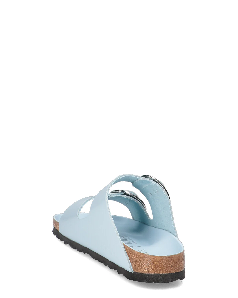 Plantare anatomico in sughero e lattice, semi-exquisit Tomaia: pelle naturale con finitura laccata Sottopiede: pelle piumato Suola: EVA Dettagli: due cinturini con grandi fibbie ad ardiglione in metallo regolabili individualmente; dettagli in colore coordinato ”Made in Germany” CALZATA STRETTA