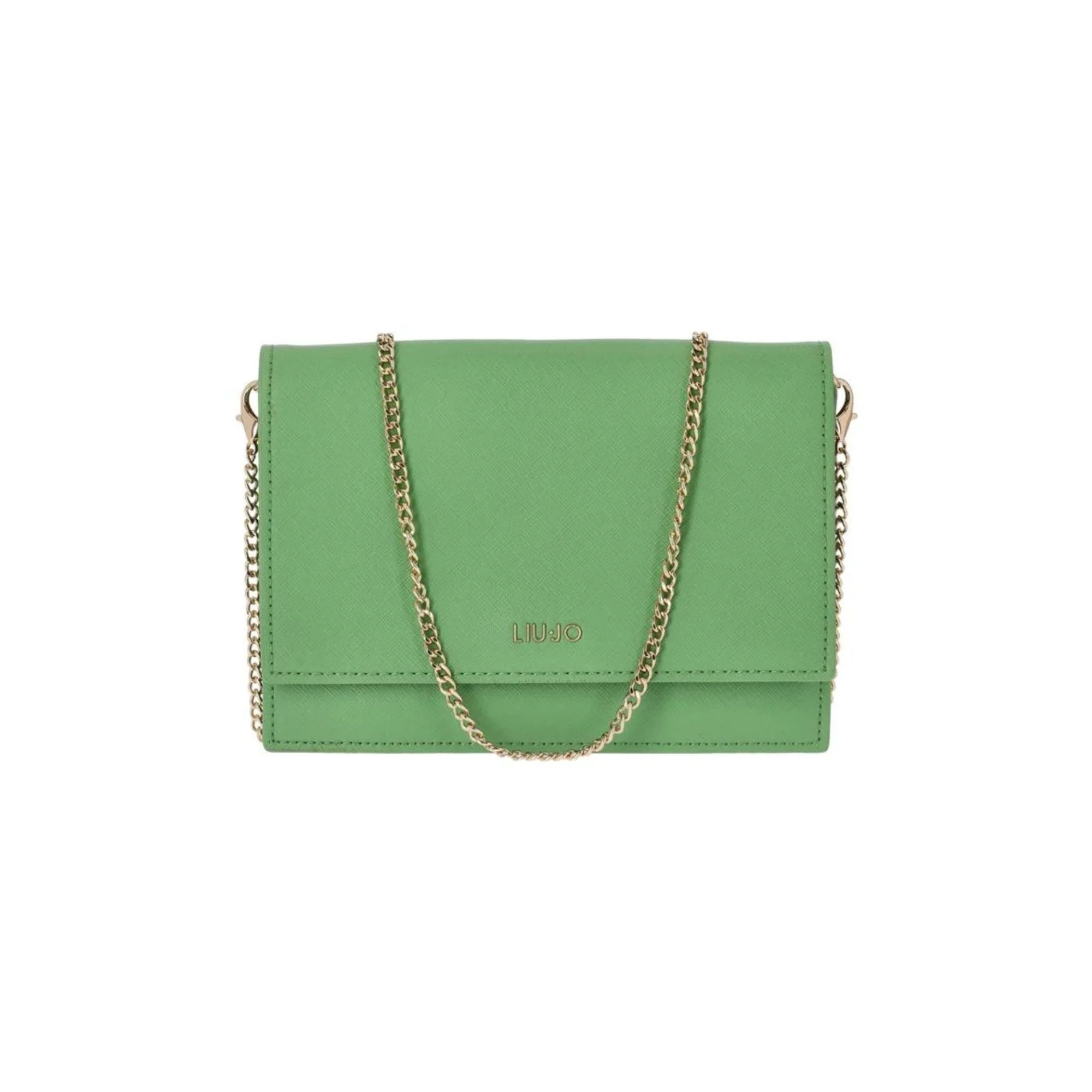 Borsa Donna firmata Liu Jo a tracolla in similpelle con finitura saffiano. Il modello dispone di una chiusura con patta con bottone magnetico, due scomparti interni, il logo in metallo sul davanti e tracolla a catena removibile. Borsetta che grazie al suo design squadrato, alla maglia metallica in oro e alla finitura saffiano diventa perfetta per una cerimonia o un evento elegante in quanto è inimitabile in finezza e classe. Dettagli Composizione: 100% Poliuretano Ecosostenibile Finitura saffiano Tasca interna con zip Chiusura bottone magnetico 8 tasche portatessera Misure: 22x16x2 cm Resistente all’acqua Cod. AA3271E0087