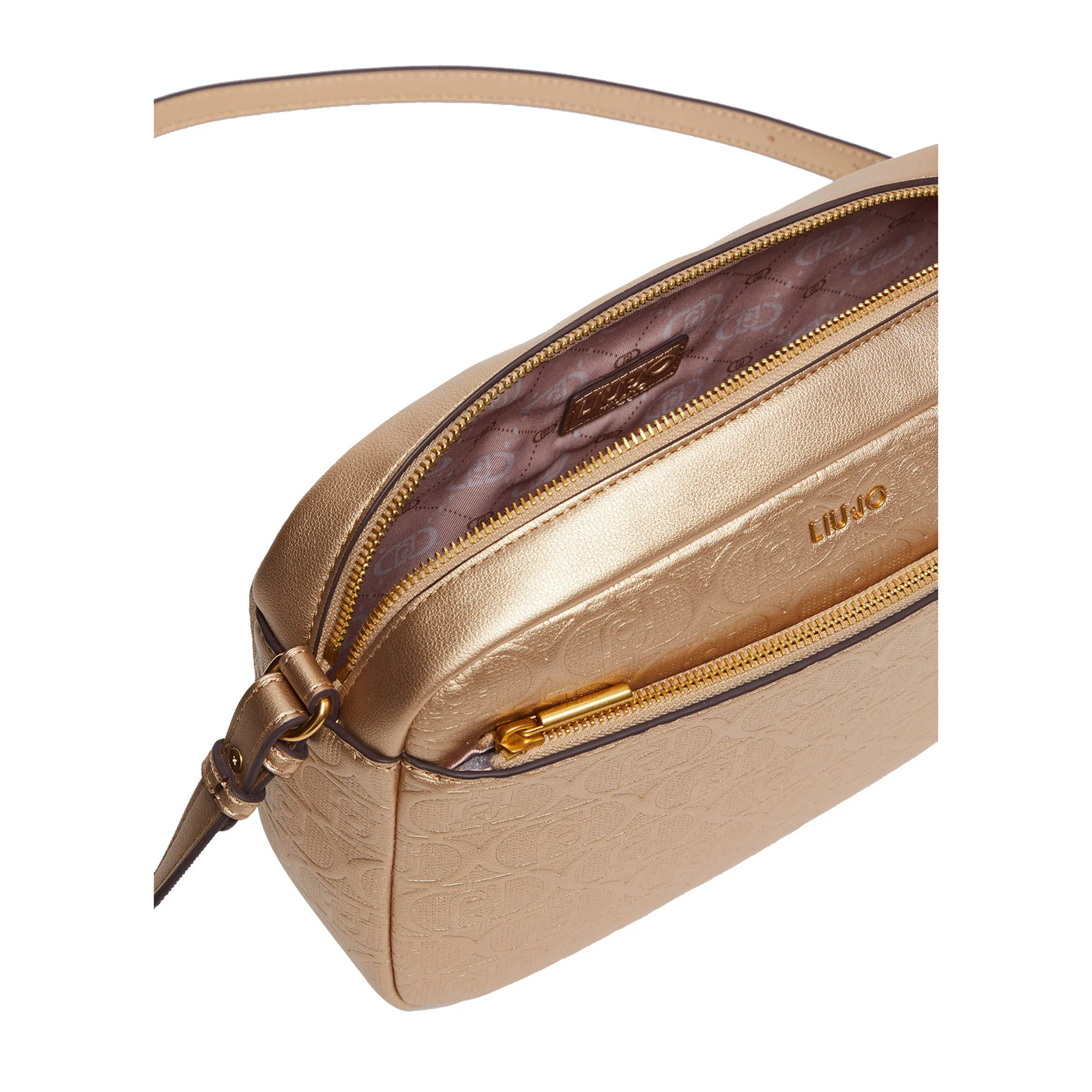 Questa Borsa a tracolla Liu Jo è il perfetto mix di stile elegante e praticità. Realizzata in ecopelle dorata, presenta loghi in rilievo all over, con una tracolla regolabile per un comfort ottimale. Dotata di una zip centrale, un taschino interno e una tasca esterna, è l’accessorio ideale per completare ogni look con un tocco di classe e funzionalità.