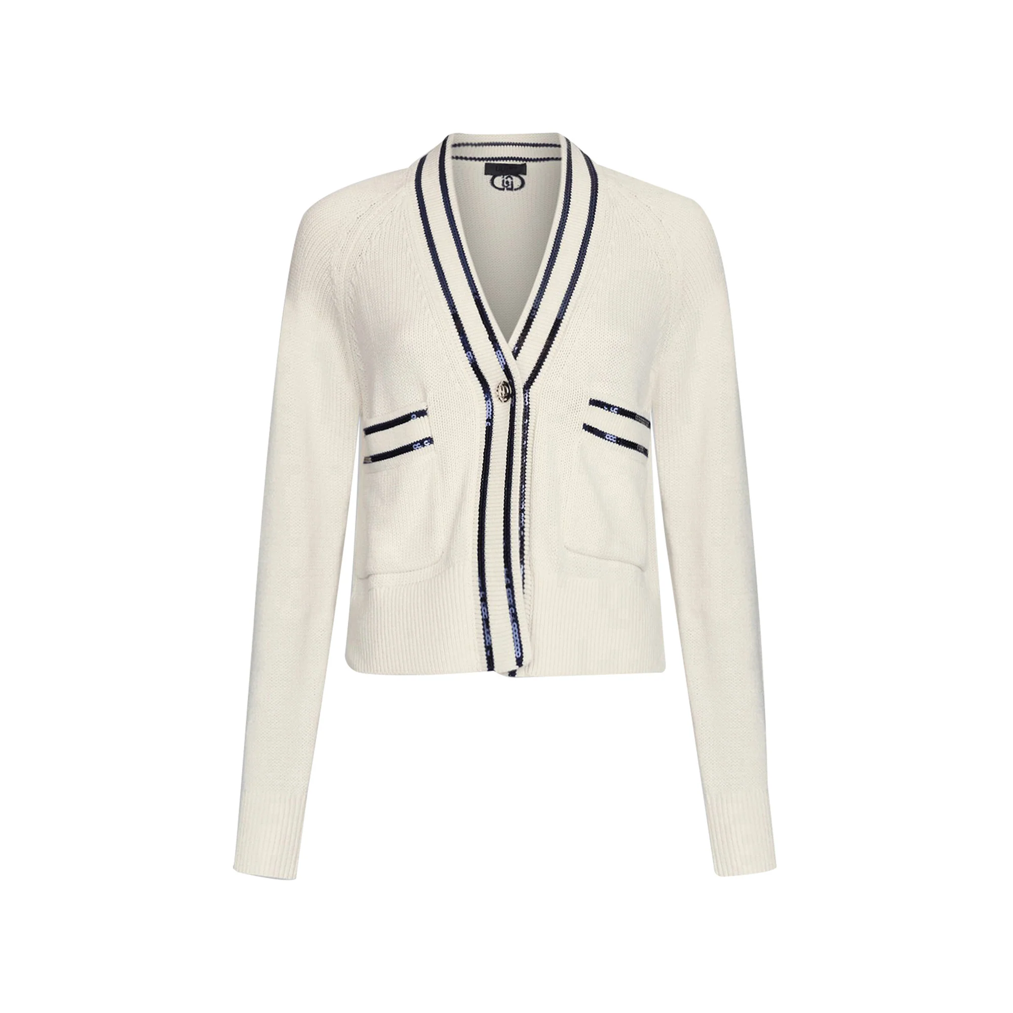Aggiungi un tocco di glamour al tuo look con questo Cardigan bianco con paillettes firmato Liu Jo. Realizzato in morbido cotone, presenta un profilo di paillettes ricamate, tasche comode e un bottone logato. Perfetto per un preppy-style elegante e alla moda. Perfetto per donne che amano distinguersi!