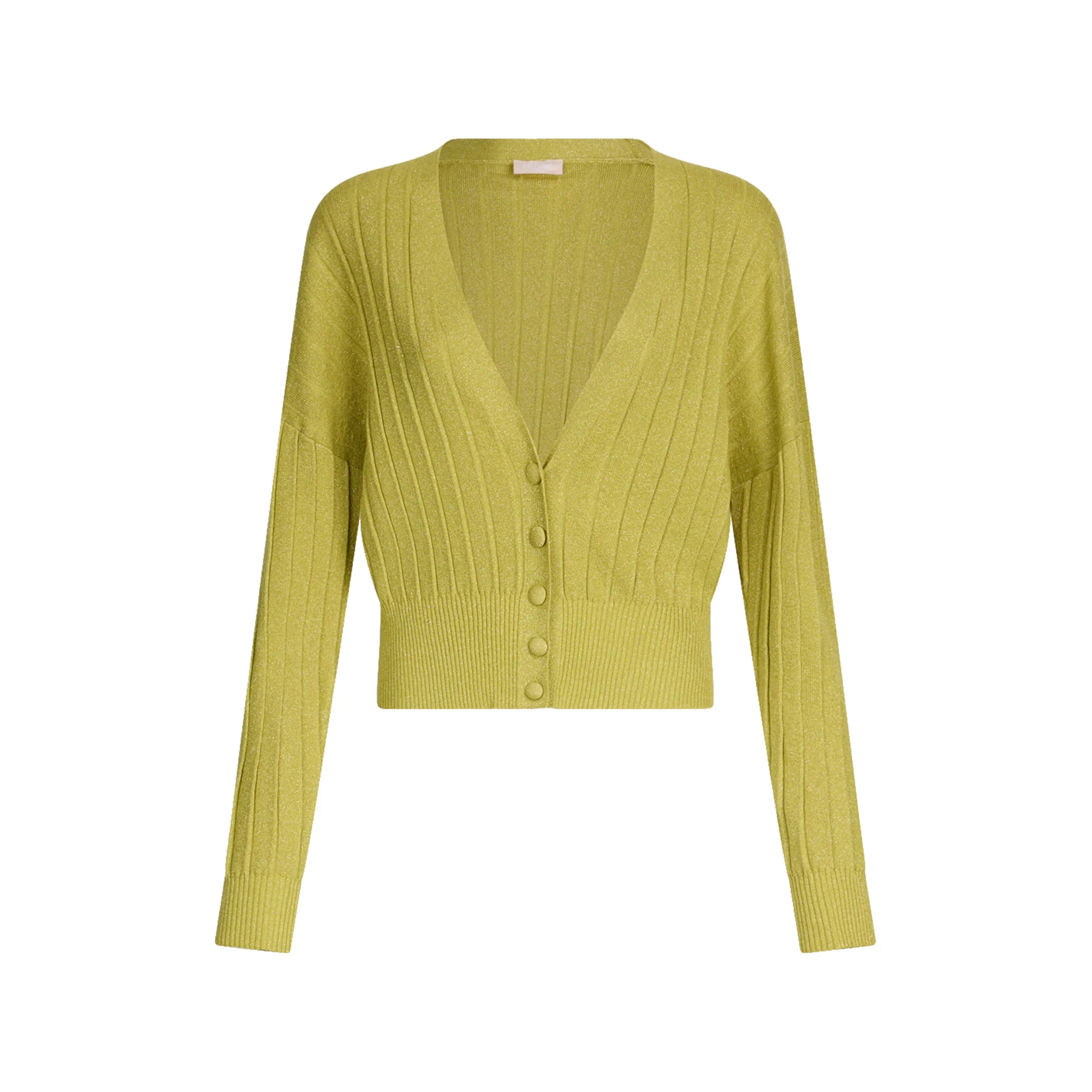 Cardigan Donna con bottoni rivestiti Verde chiaro