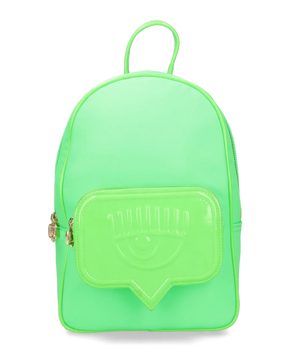-Zaino in tessuto sintetico con bretelle logate e dettaglio lucido Eyelike sul davanti.