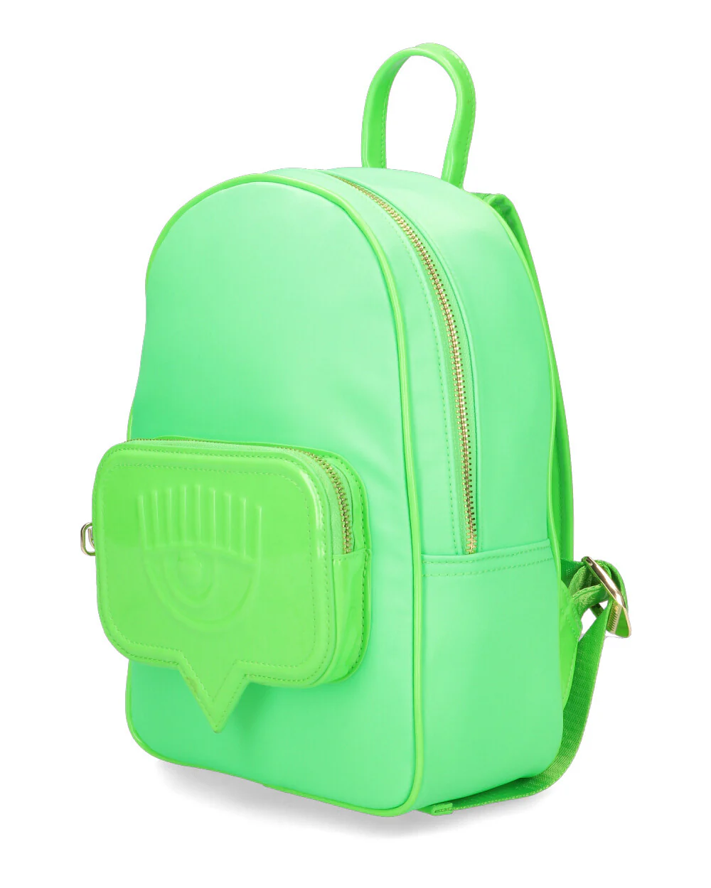 -Zaino in tessuto sintetico con bretelle logate e dettaglio lucido Eyelike sul davanti. -Dimensioni : 29*20*11 cm