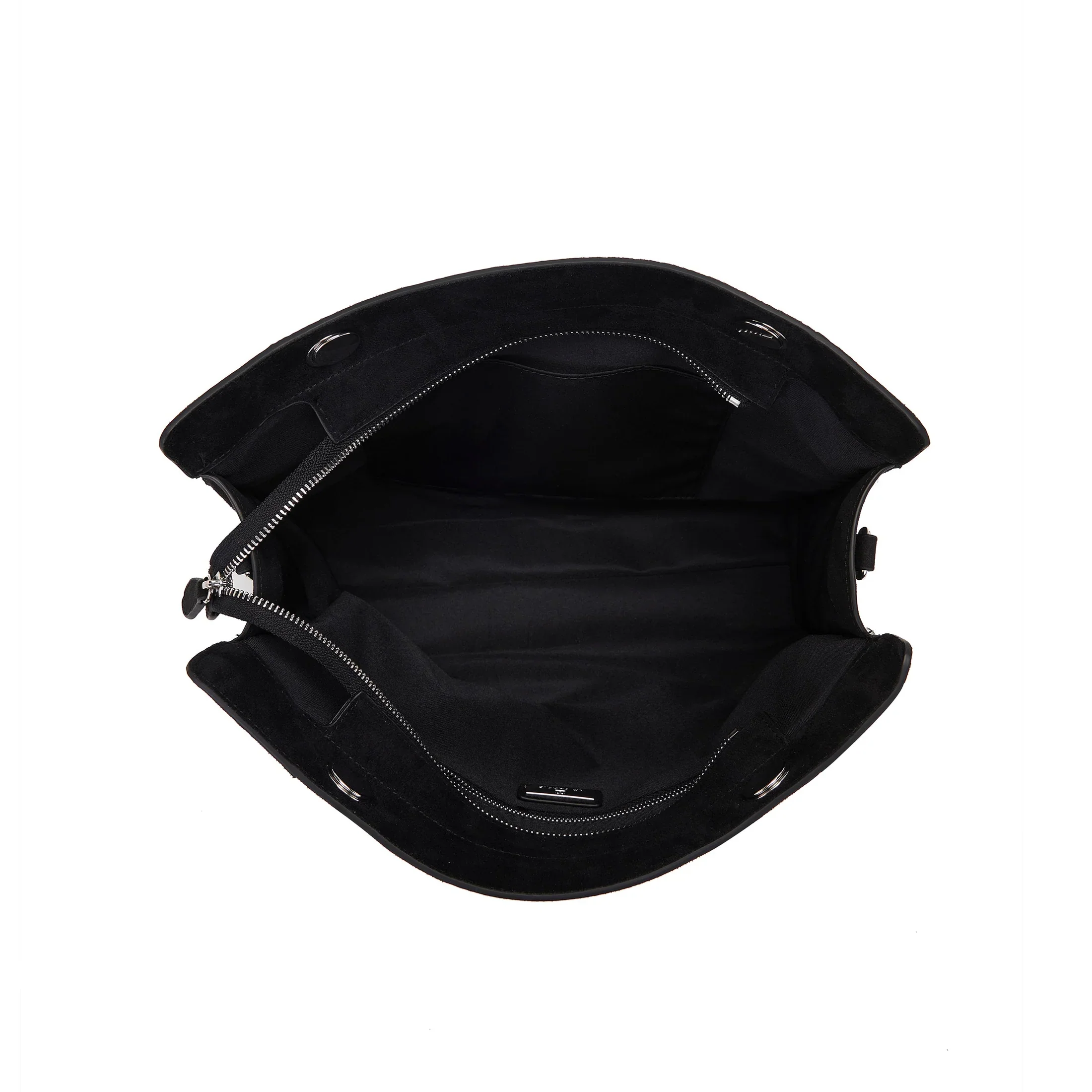 Borsa shopping in suede con occhielli e borchie in argento, doppi manici in catena e tracolla rimovibile 37x10x31cm 152P-TB-195-SUE/BLA