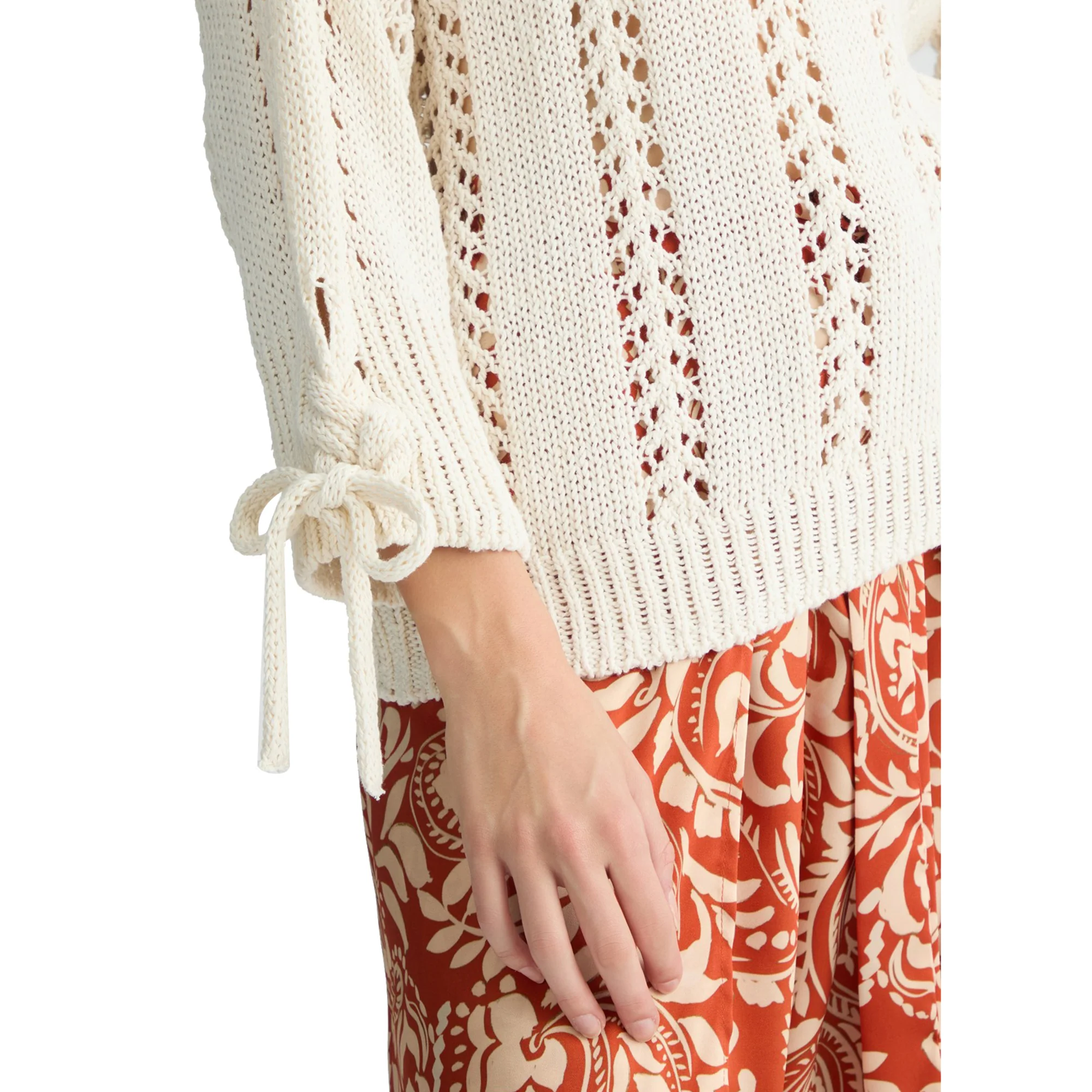 Maniche a 3/4 con fiocchetti;