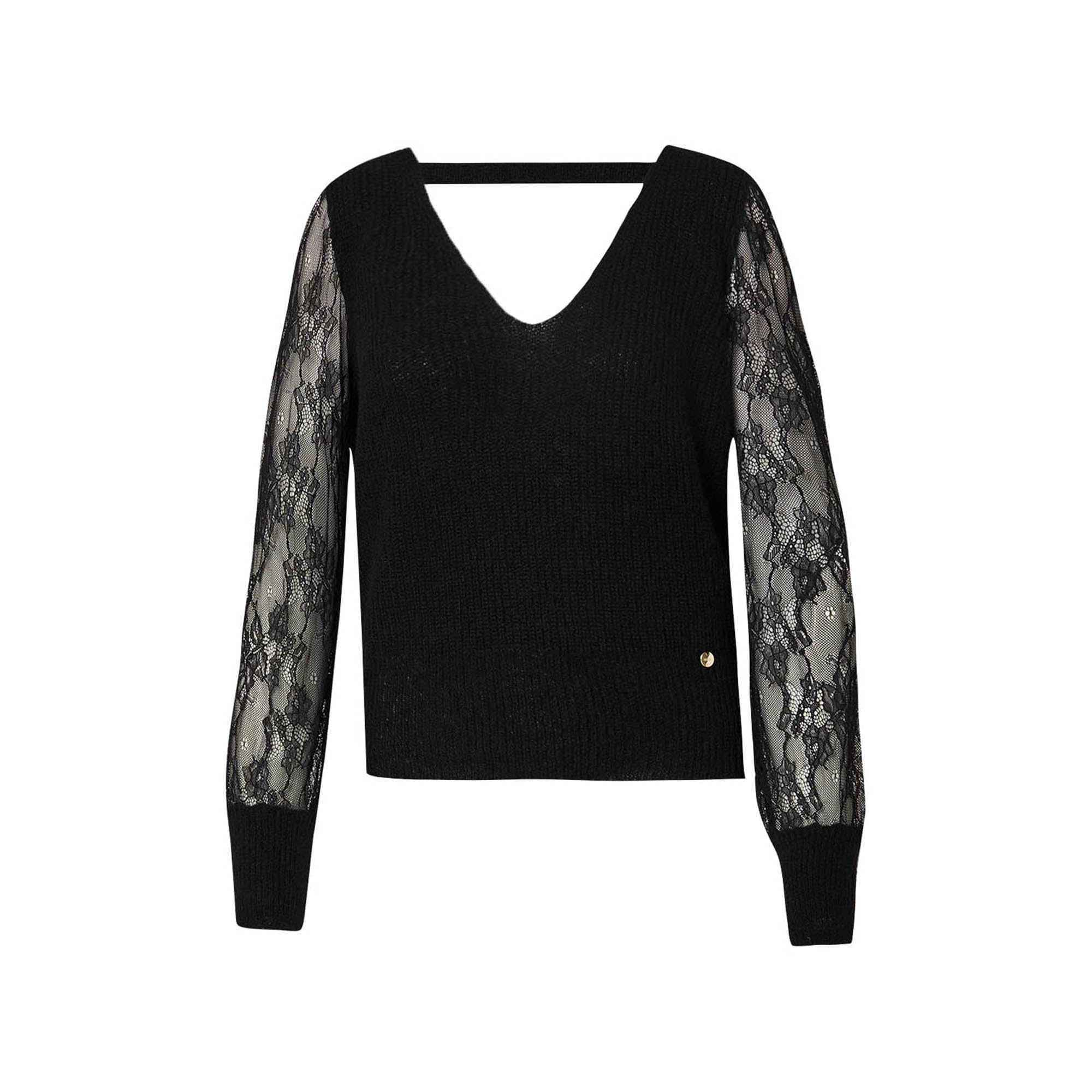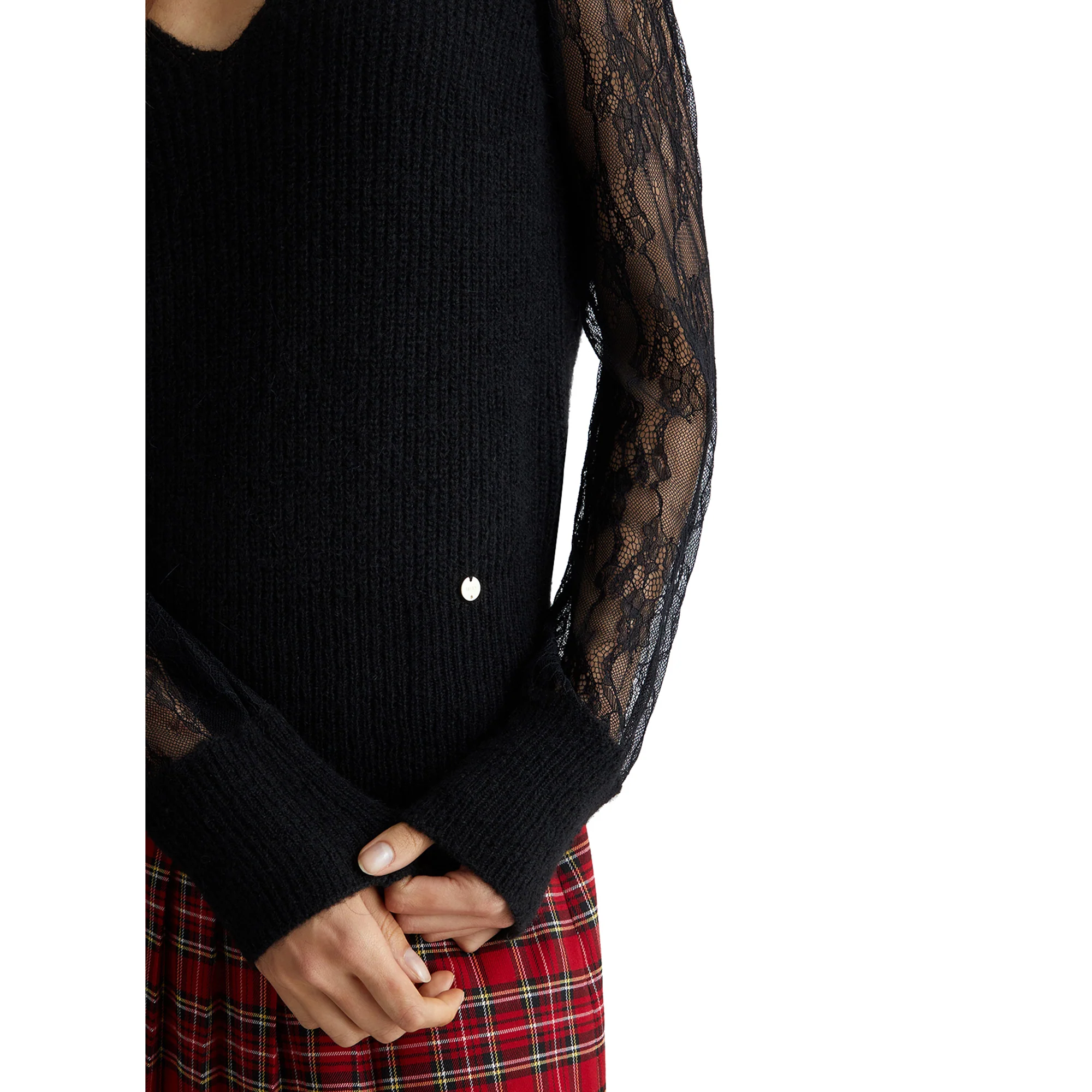 Aggiungi un tocco di eleganza al tuo guardaroba con la nostra Maglia nera in filati di lana e alpaca firmata Liu Jo. Le maniche lunghe in pizzo e lo scollo a V sul davanti e sul retro la rendono magnificamente raffinata. Perfetta per ogni occasione speciale.