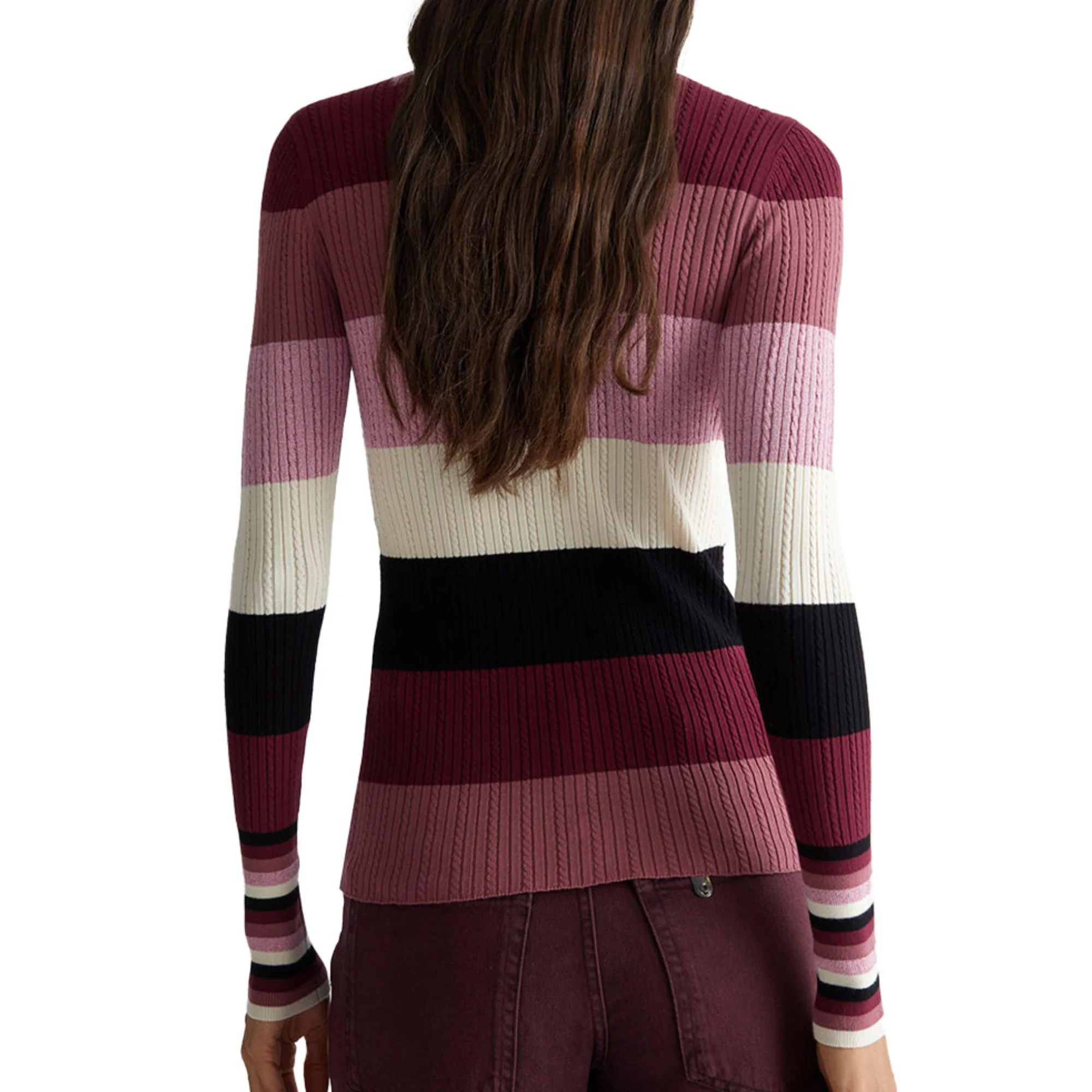Porta energia e stile al tuo guardaroba con il Maglione Donna a righe firmato Liu Jo. Realizzato in maglia di misto viscosa, questo dolcevita con maniche lunghe presenta una lavorazione a trecce e coste per una vestibilità confortevole. Il motivo a righe e gli interventi in lurex aggiungono un tocco di eleganza, mentre il logo in metallo sul retro completa il look.