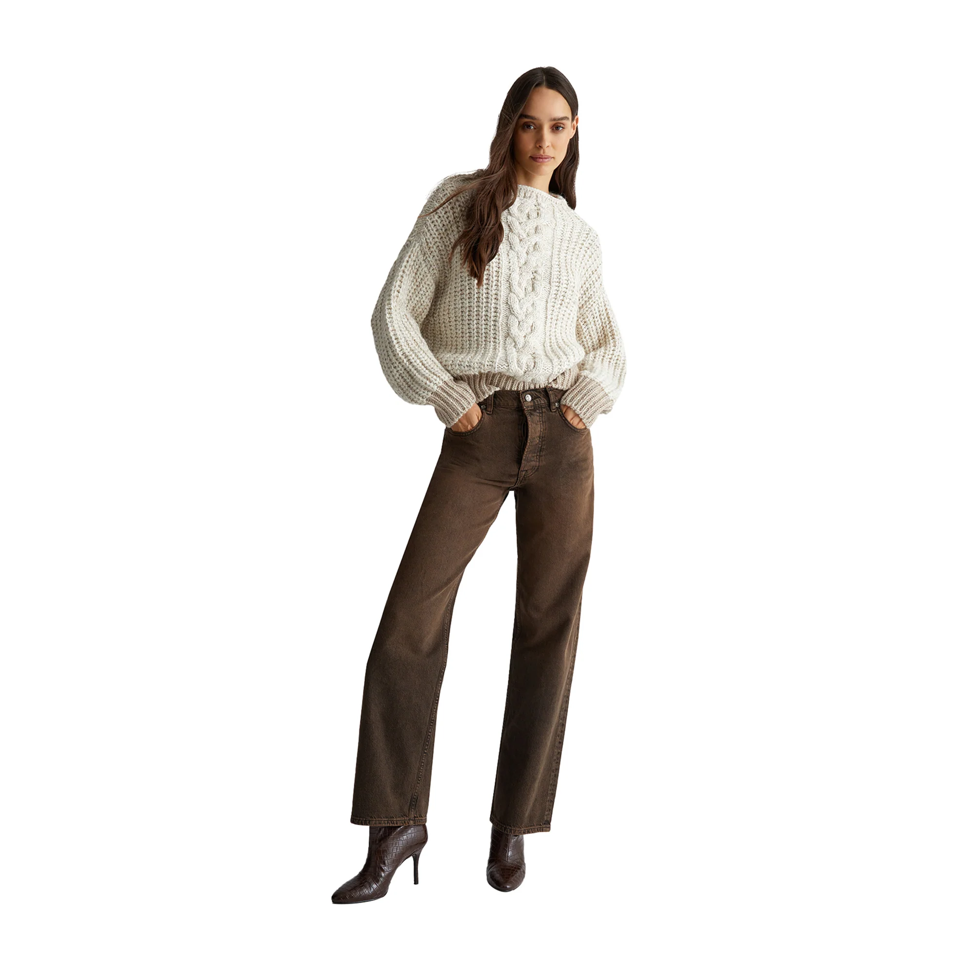 Questo Maglione di misto lana Beige di Liu Jo presenta una lavorazione a trecce sul davanti, uno scollo a barca e maniche lunghe per un look elegante. Il logo in metallo sul retro aggiunge un tocco di stile, mentre i bordi a coste in un colore più scuro offrono una finitura raffinata. Un capo essenziale […]