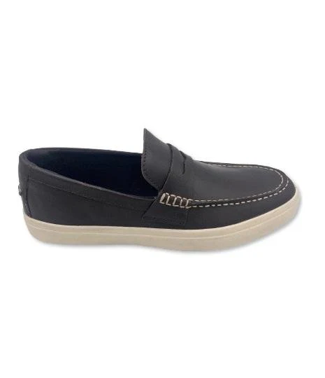 Mocassini da uomo in pelle tinta unita, con impunture sul puntale in contrasto colore.