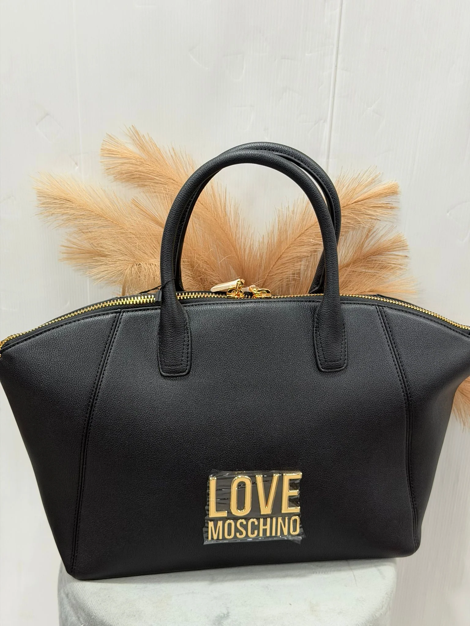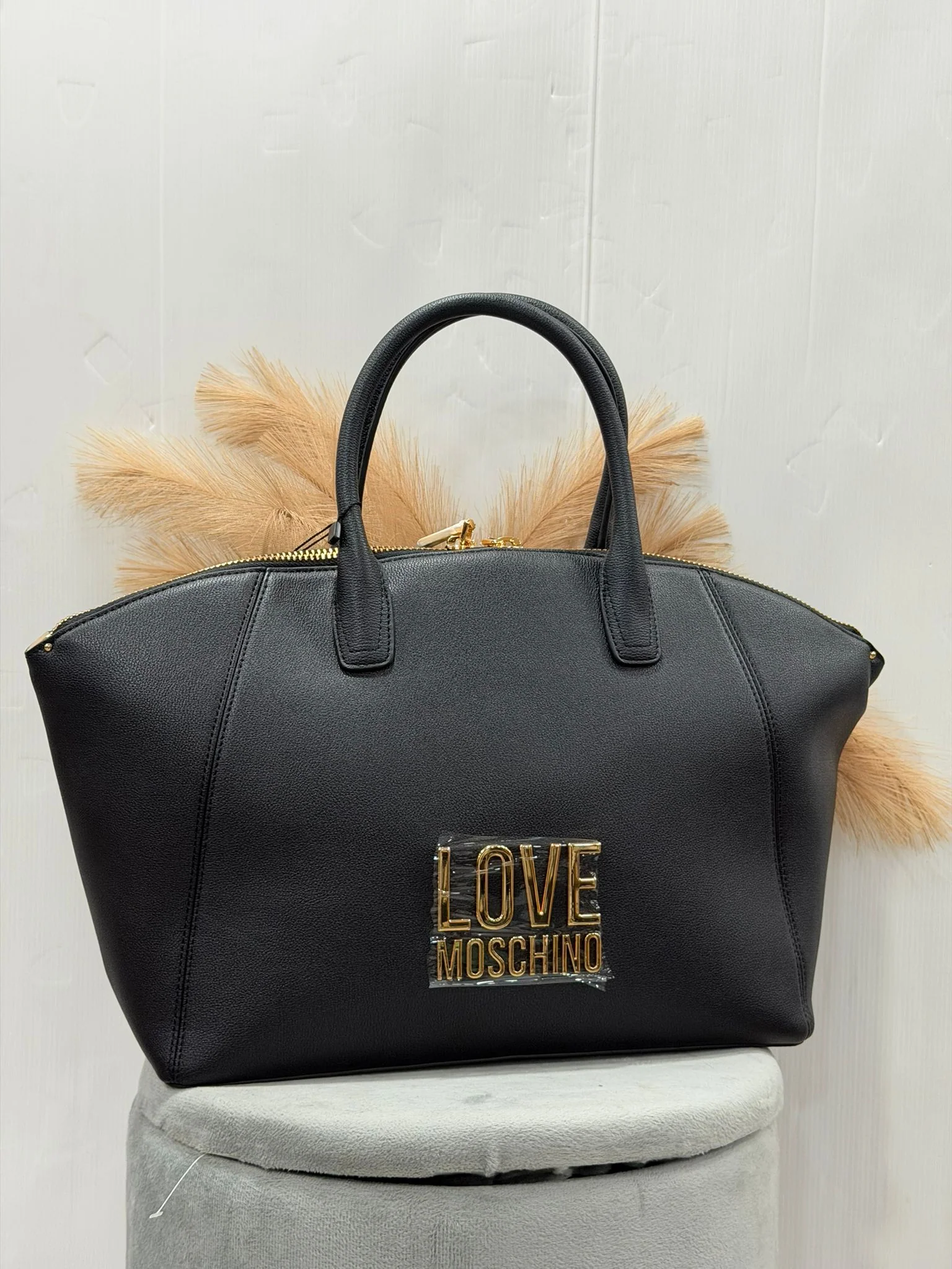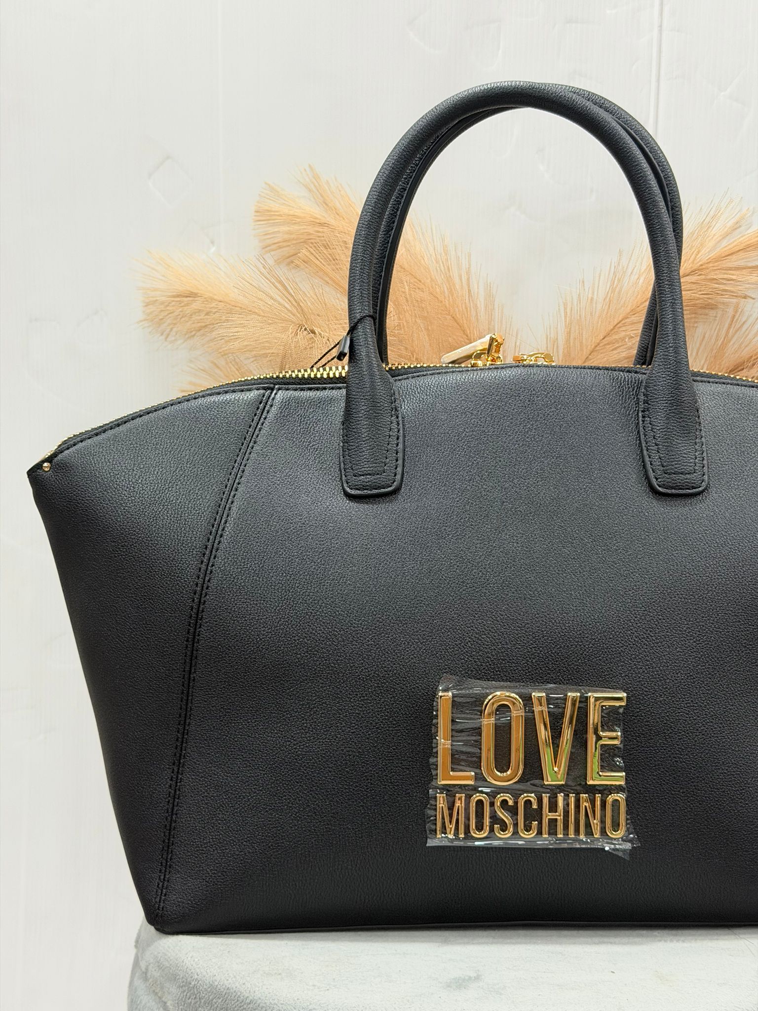 Borsa con chiusura zip Doppio manico logo sul davanti colore oro dimensioni 47x27cm
