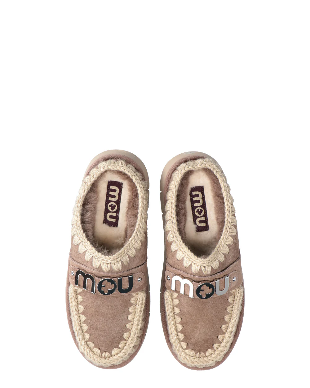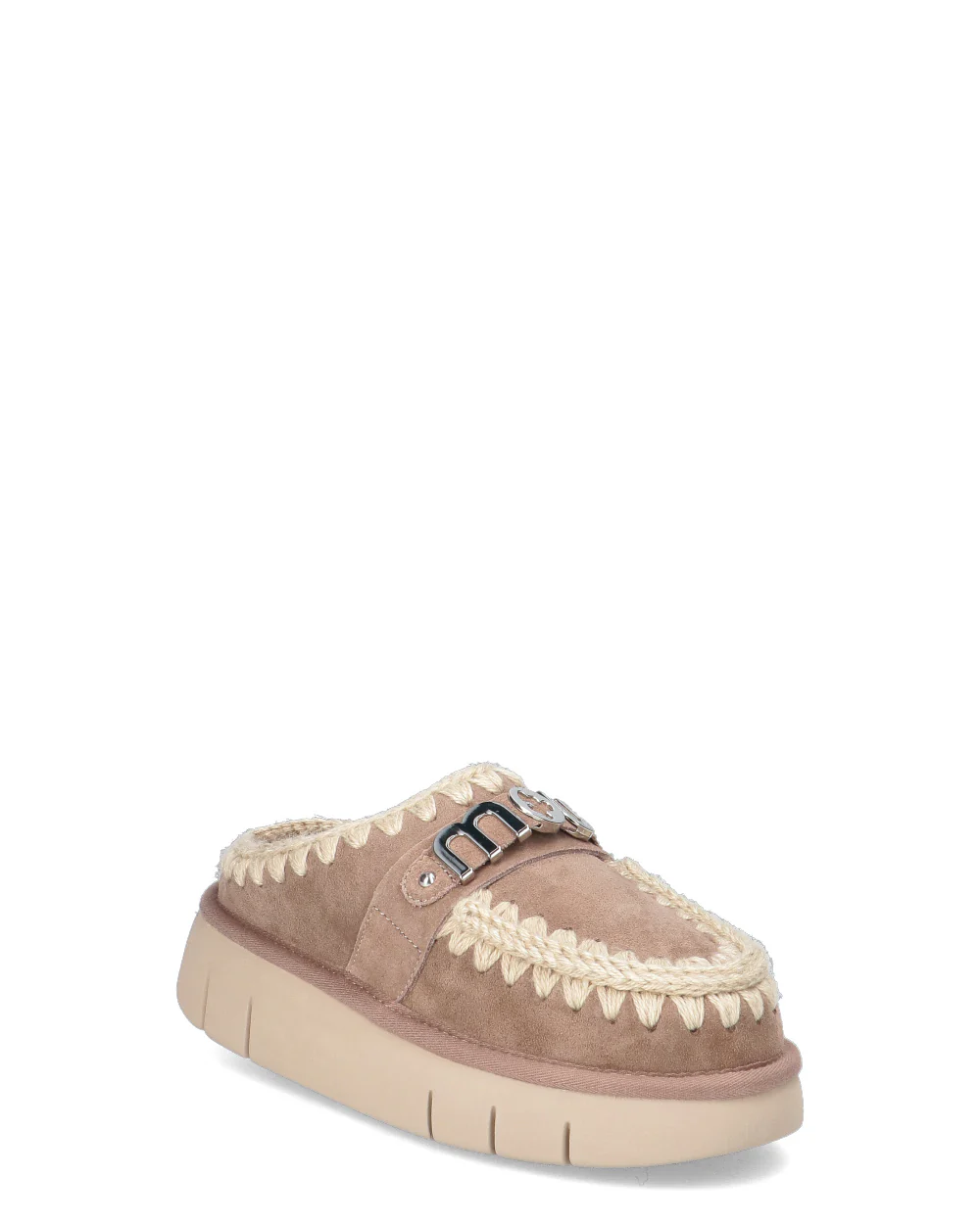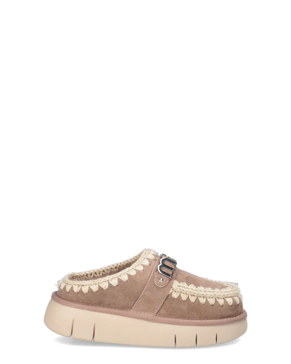 -Bounce clog con logo metallizzato realizzato in vera pelle di montone double face -Fondo gomma