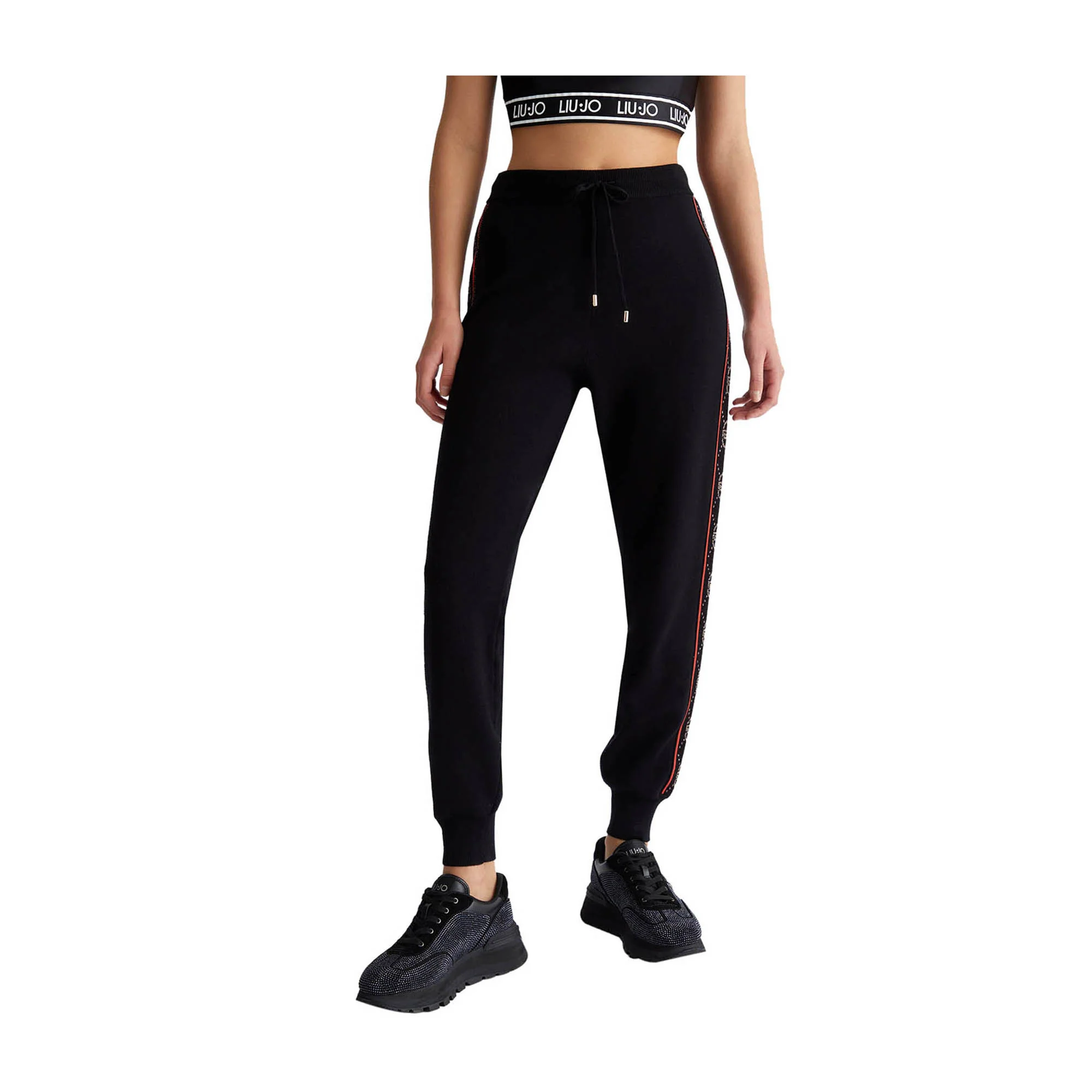 Prova il comfort e lo stile dei Pantaloni Lunghi Donna in maglia di Liu Jo! Con vestibilità regolare, logo sui lati e cintone elastico in vita con coulisse, ti sentirai sempre al tuo meglio. Inoltre, gli elastici alle caviglie rendono questi pantaloni perfetti per ogni tua attività, dal jogging alla relax.