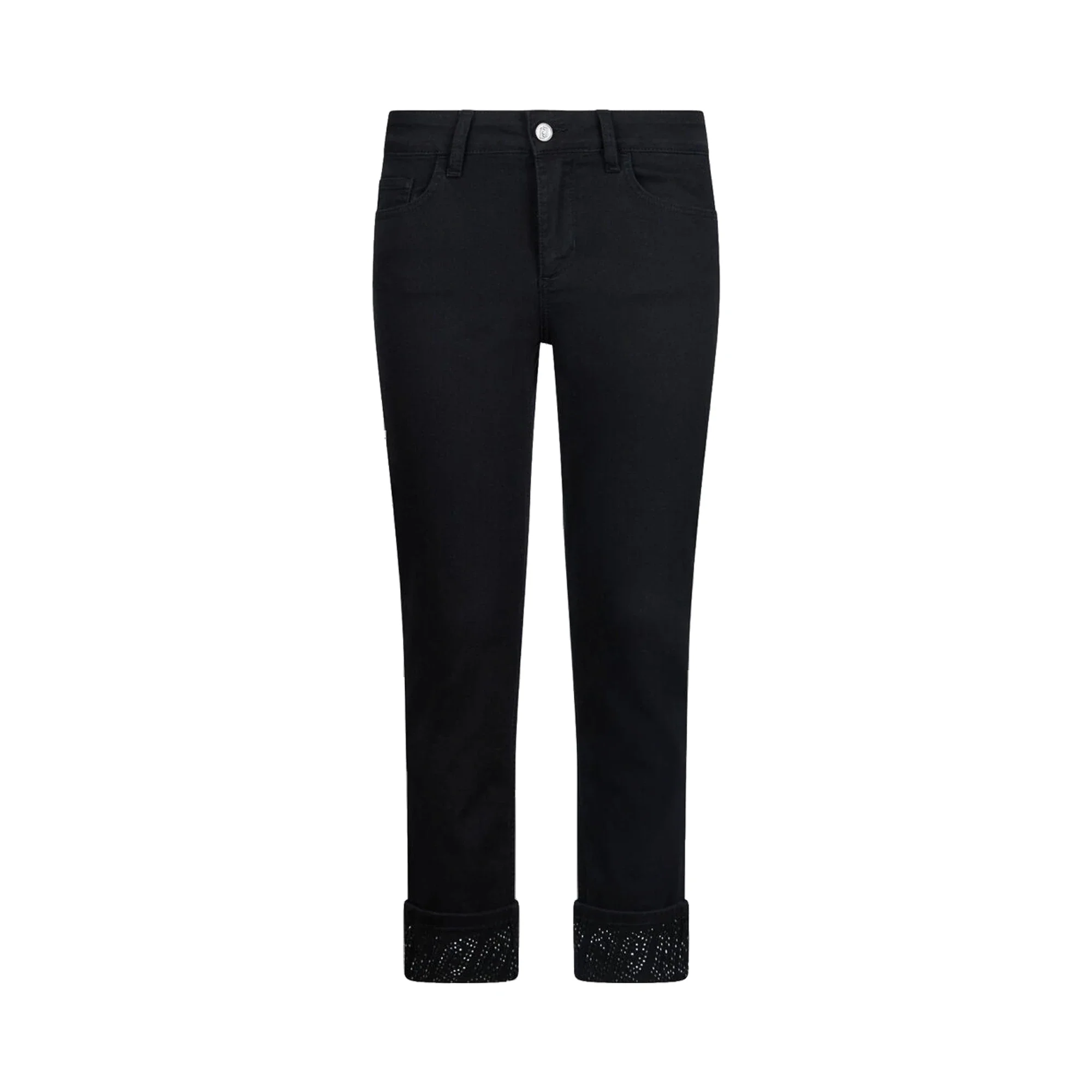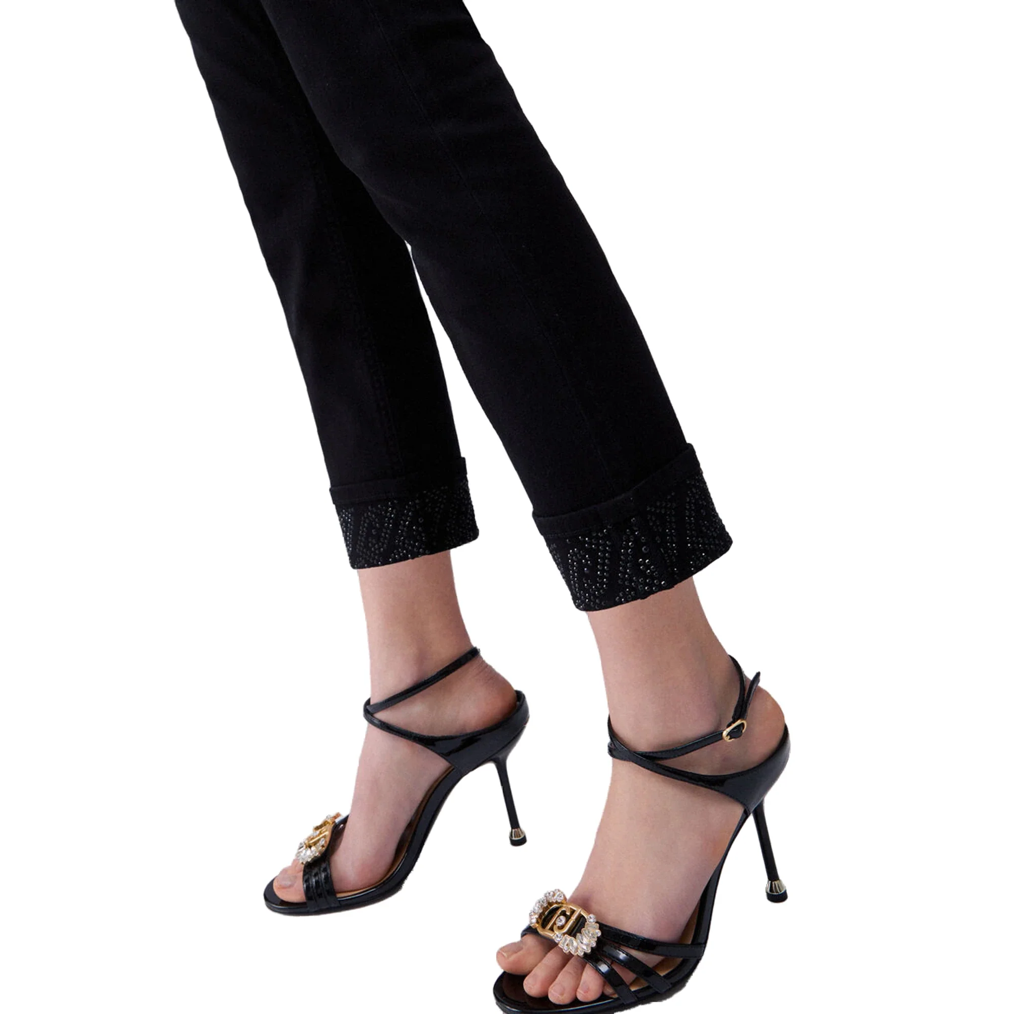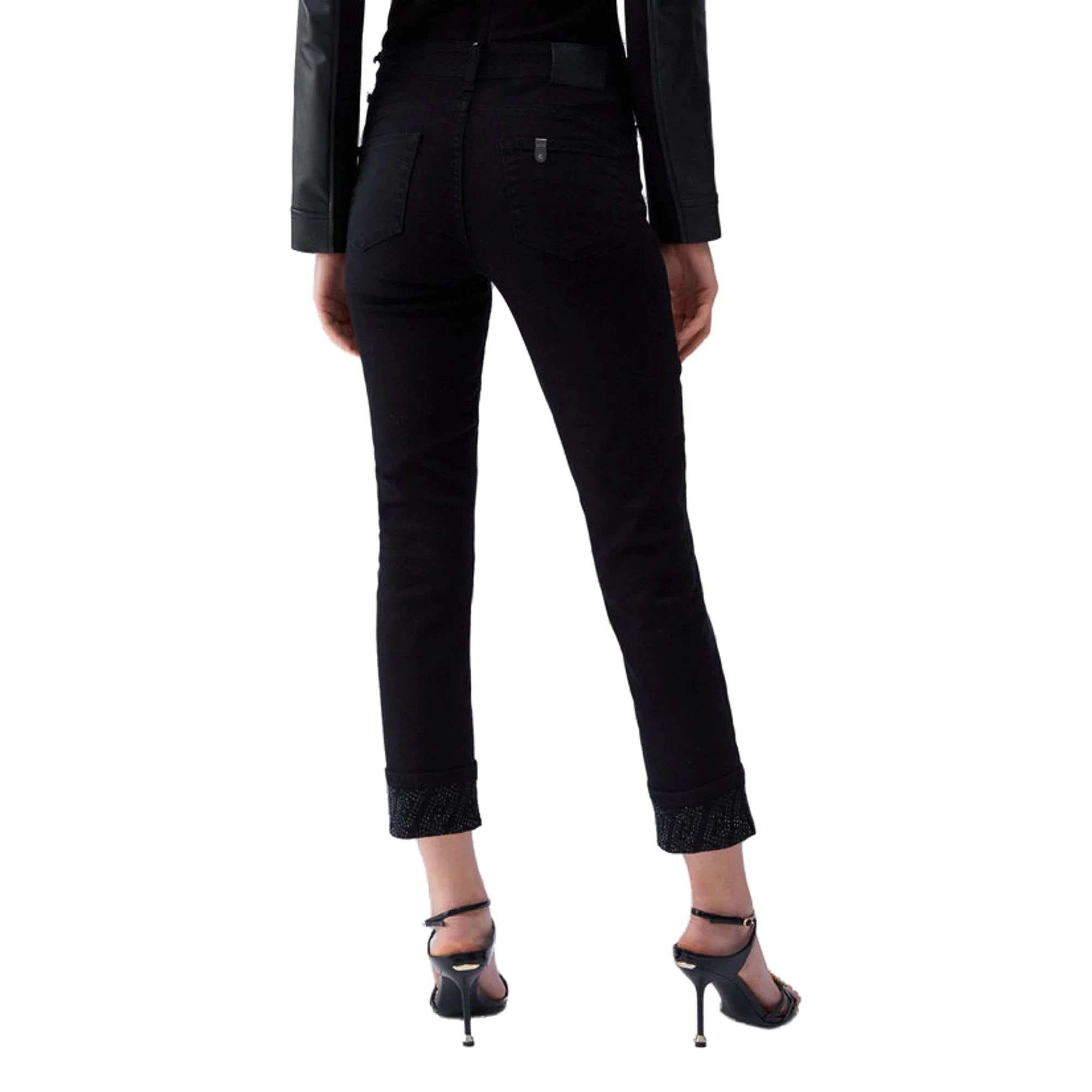 Pantaloni skinny Donna con risvolto e strass Nero