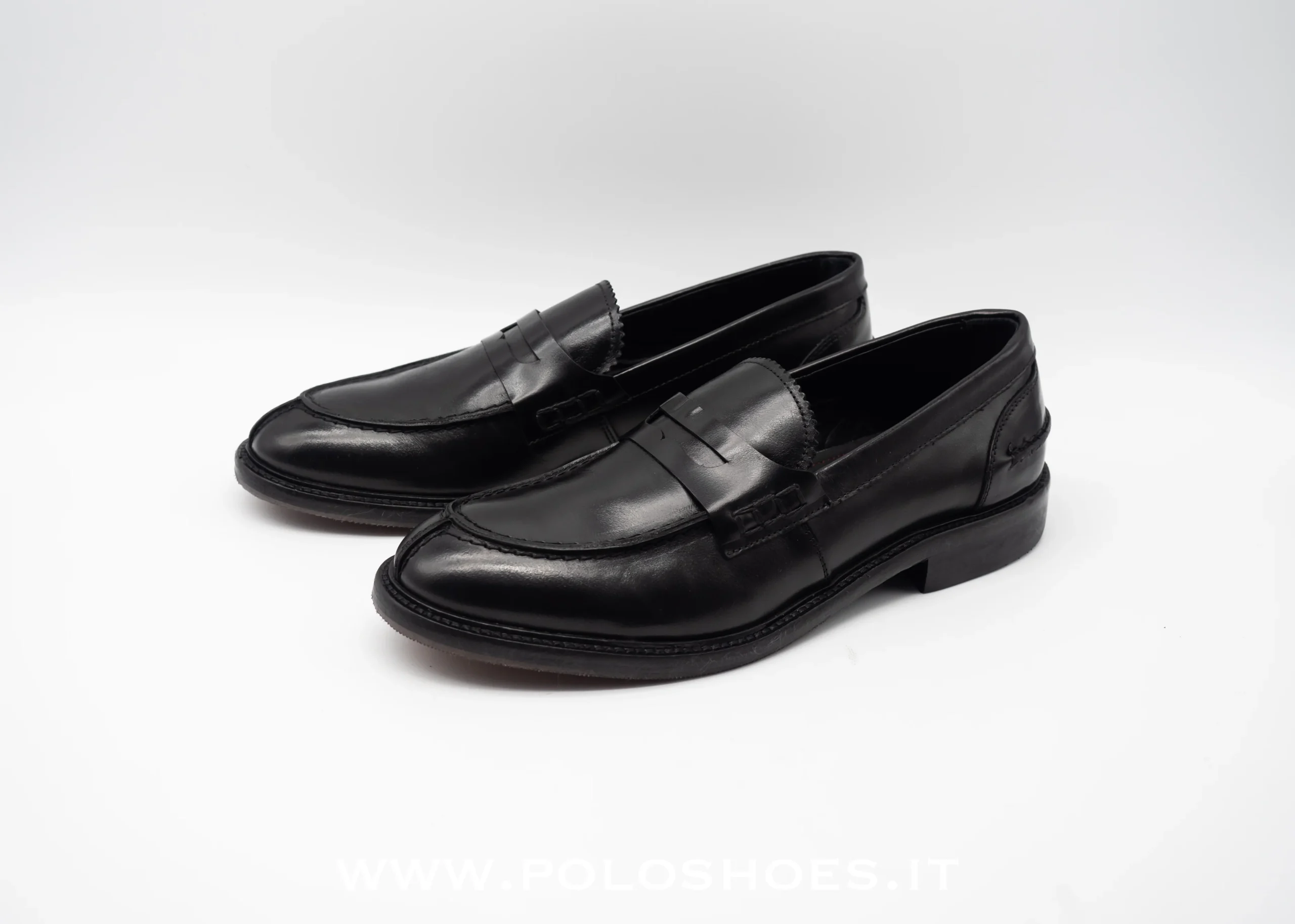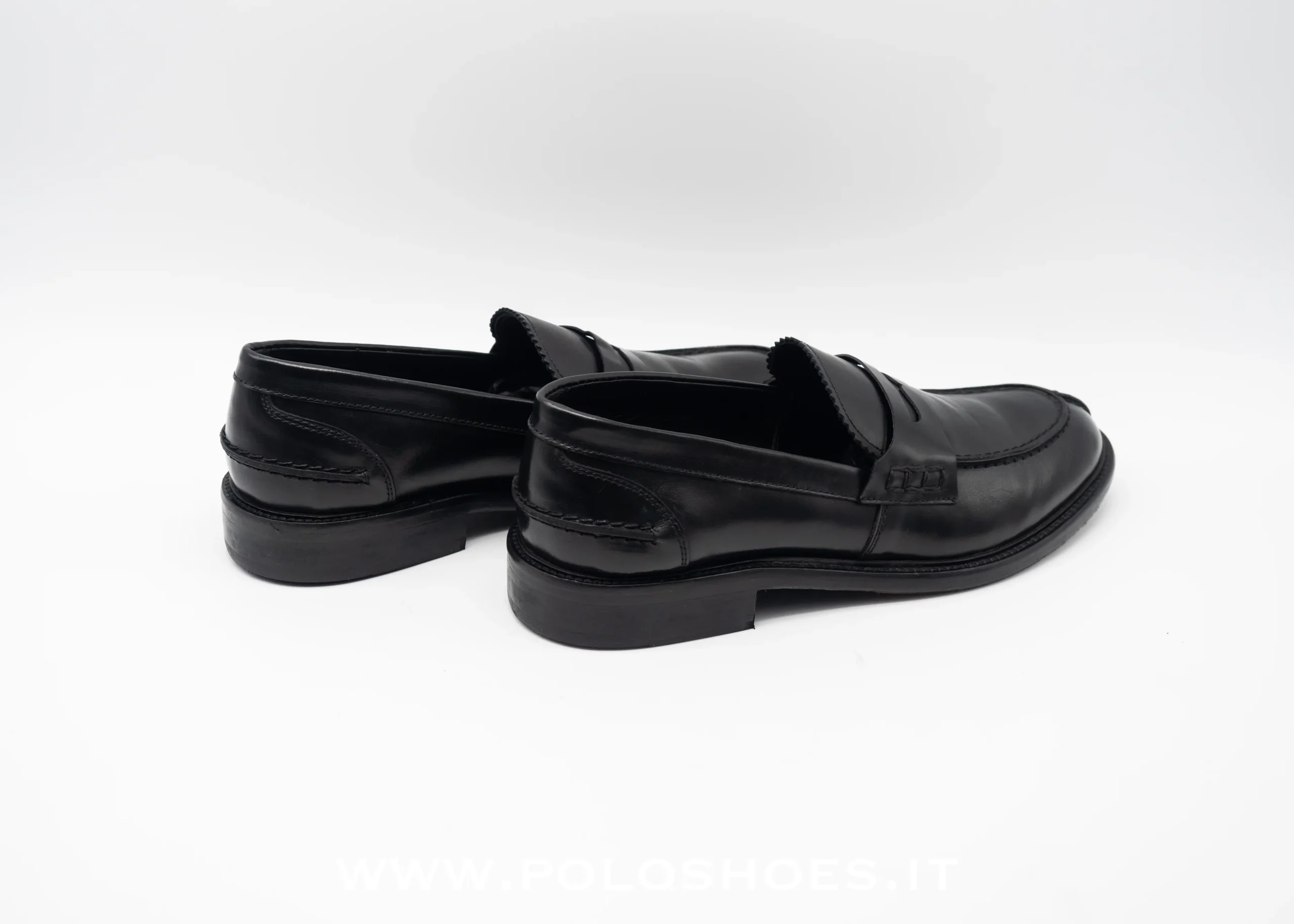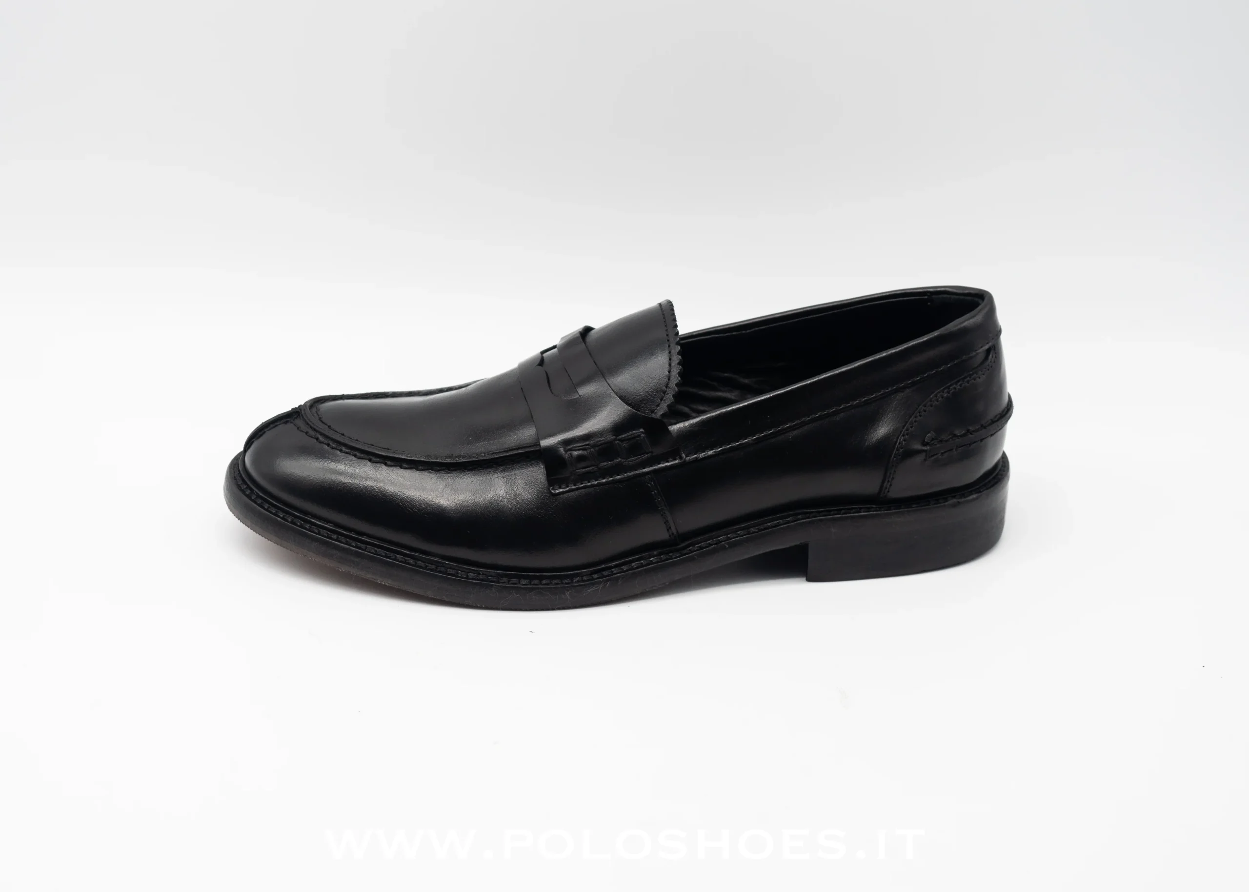 Mocassino college in pelle nera , planetario morbido all’interno , suola in vero cuoio cucita con inserto mezza suola gomma antiscivolo made in italy