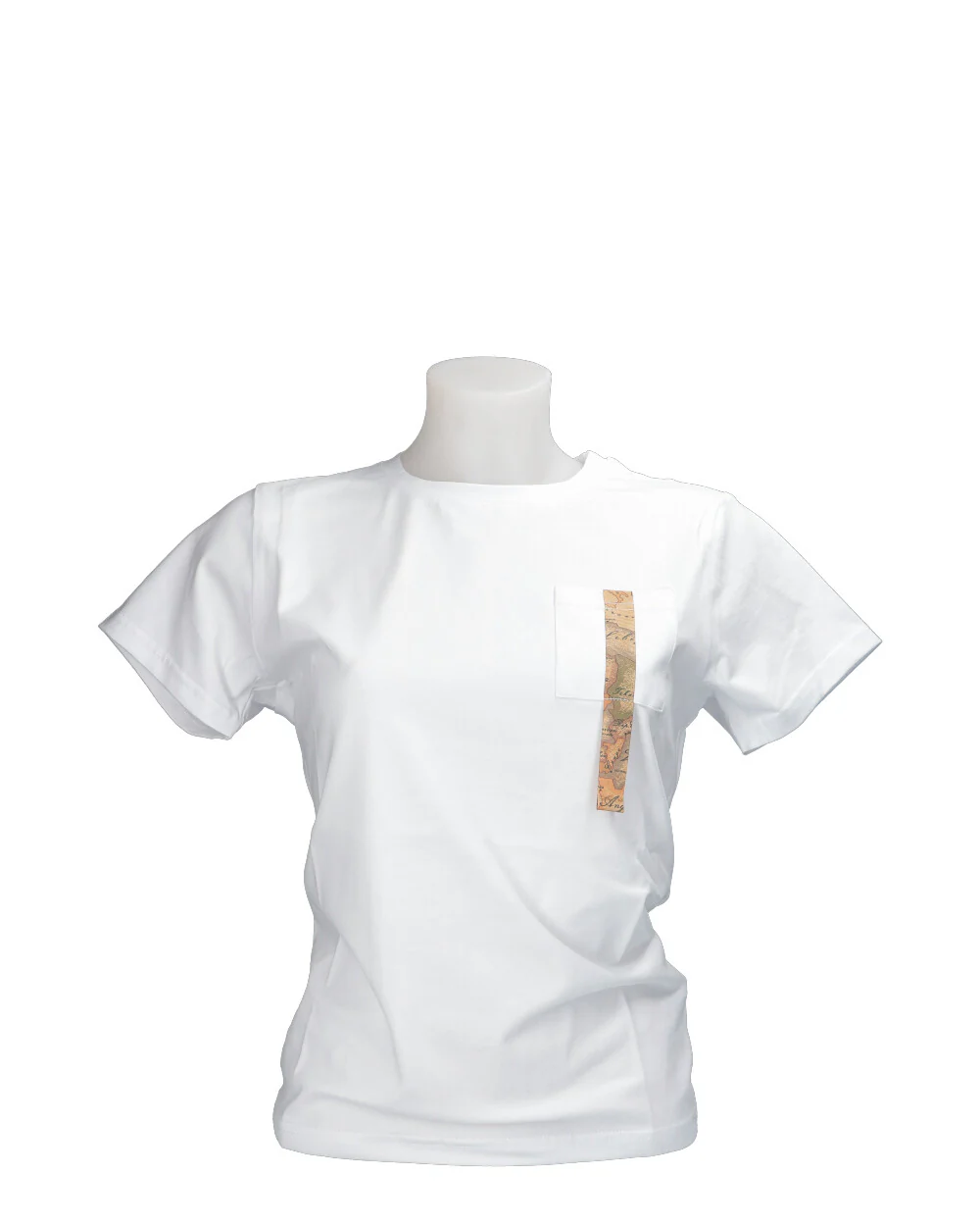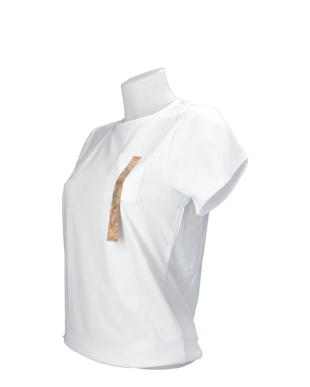 T-shirt in jersey di cotone Un taschino frontale Inserto in tessuto Geo classic sul taschino Maniche corte