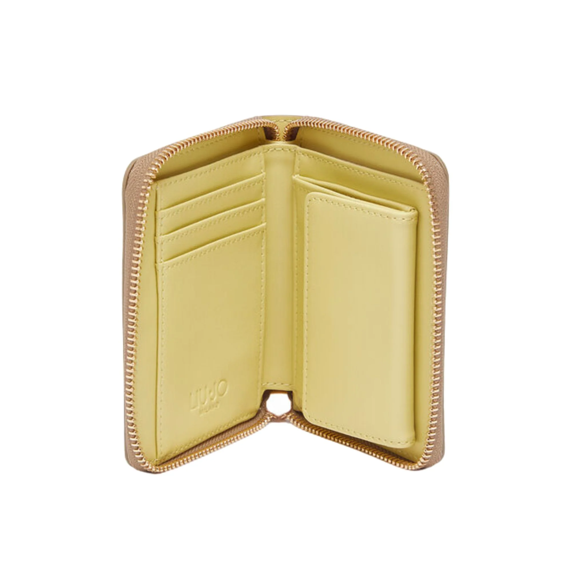 Scopri il Portafoglio Donna compatto firmato Liu Jo! Un portafoglio monocolore dall’effetto bottalato, dotato di una chiusura con zip around e di una tasca interna per monete. Il logo frontale in metallo dona a questo accessorio un tocco di stile in più. Un vero must-have!