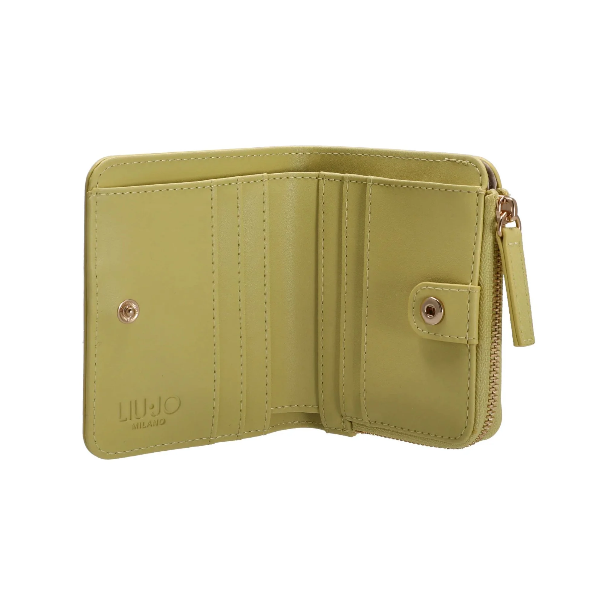 Esalta il tuo stile con il Portafoglio Donna Verde firmato Liu Jo! Un portafoglio stampa saffiano, dotato di uno scomparto con zip around e di uno scomparto con bottone a pressione contente slot per carte e banconote. Un vero must-have!