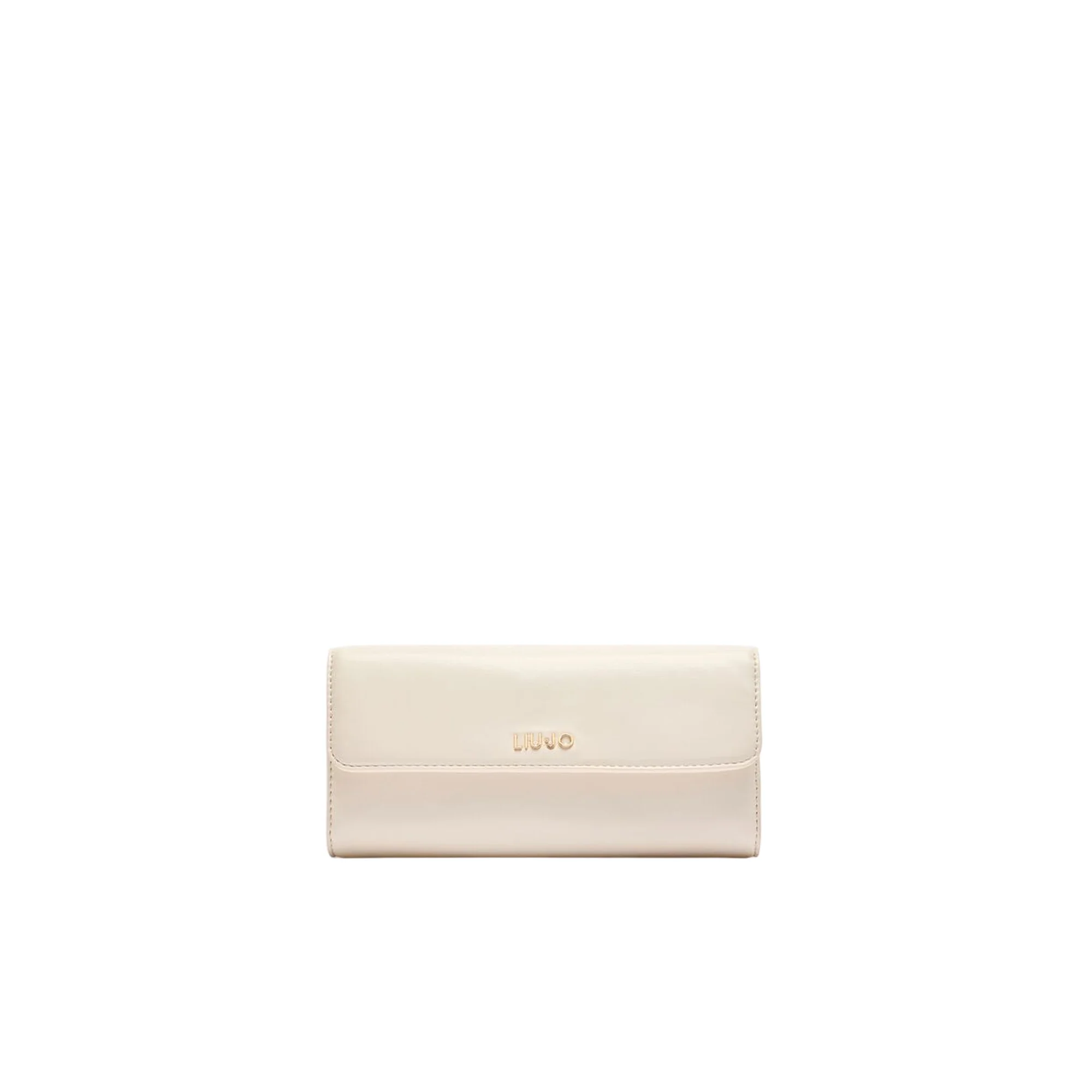 Il Portafoglio Grande da donna in tinta unita bianca di Liu Jo unisce eleganza e funzionalità. Dotato di logo in metallo sul davanti, offre numerosi scomparti per tessere e banconote, oltre a una pratica tasca con zip per le monete. La chiusura con patta e bottone a pressione garantisce sicurezza e comodità. Perfetto per chi desidera organizzare il proprio denaro con stile e raffinatezza.