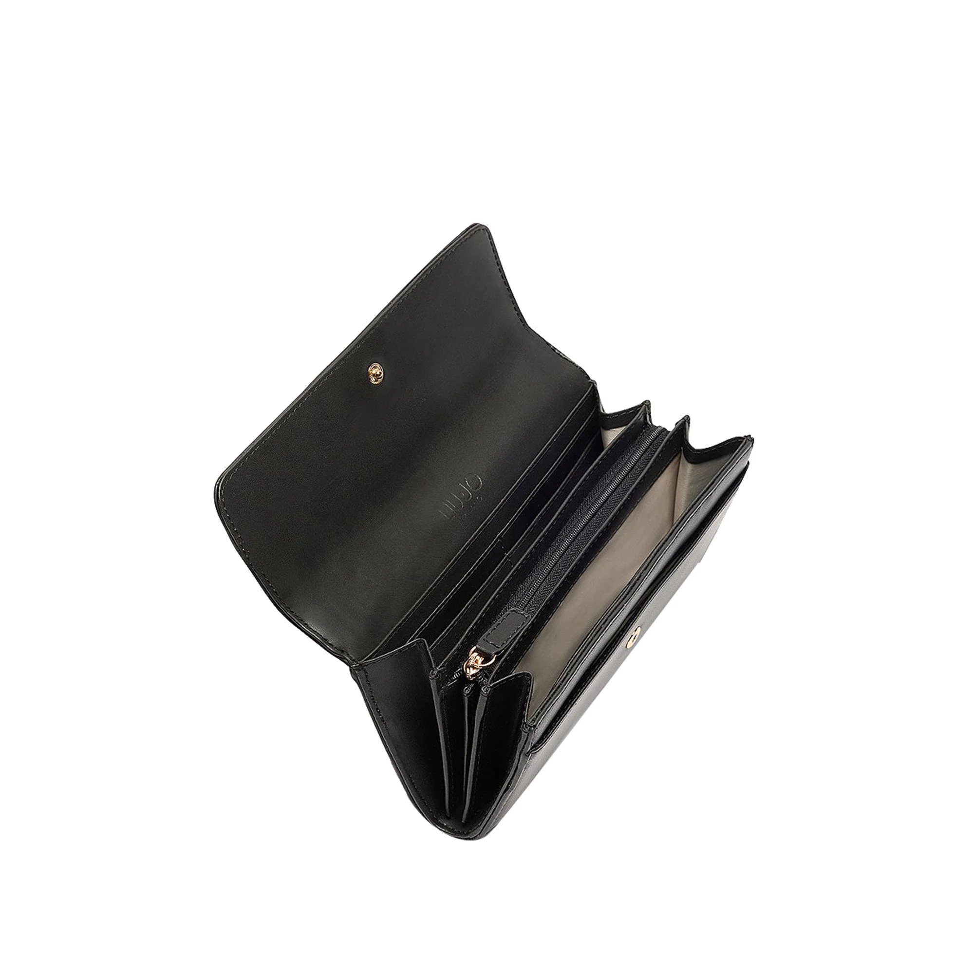 Il Portafoglio Grande da donna in tinta unita nera di Liu Jo è perfetto per chi ama la praticità e l’eleganza. Con il logo in metallo sul davanti, offre scomparti per tessere e banconote, una tasca con zip per le monete e si chiude con patta e bottone a pressione. Un accessorio essenziale per organizzare al meglio il proprio denaro con stile!