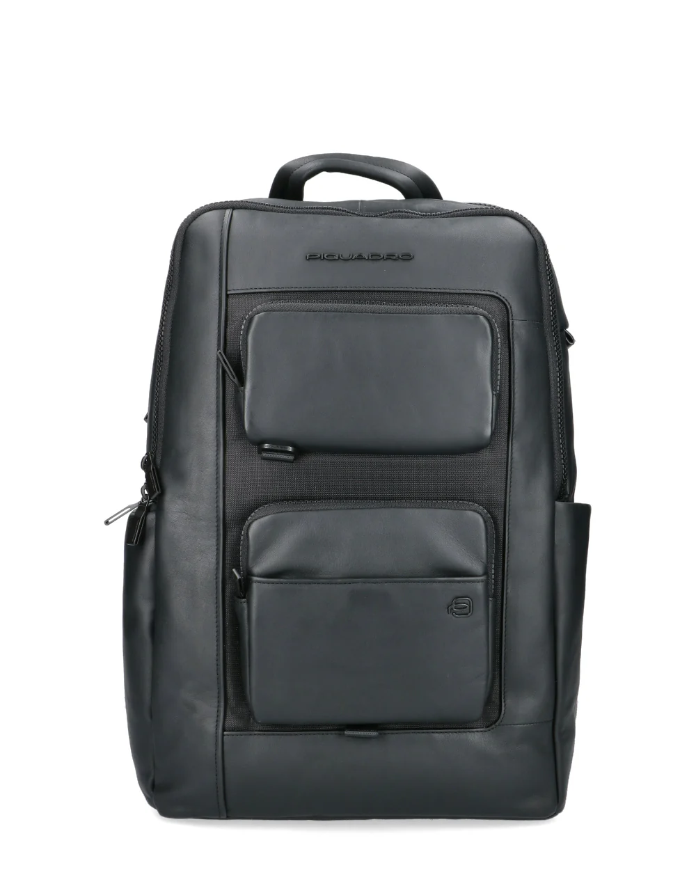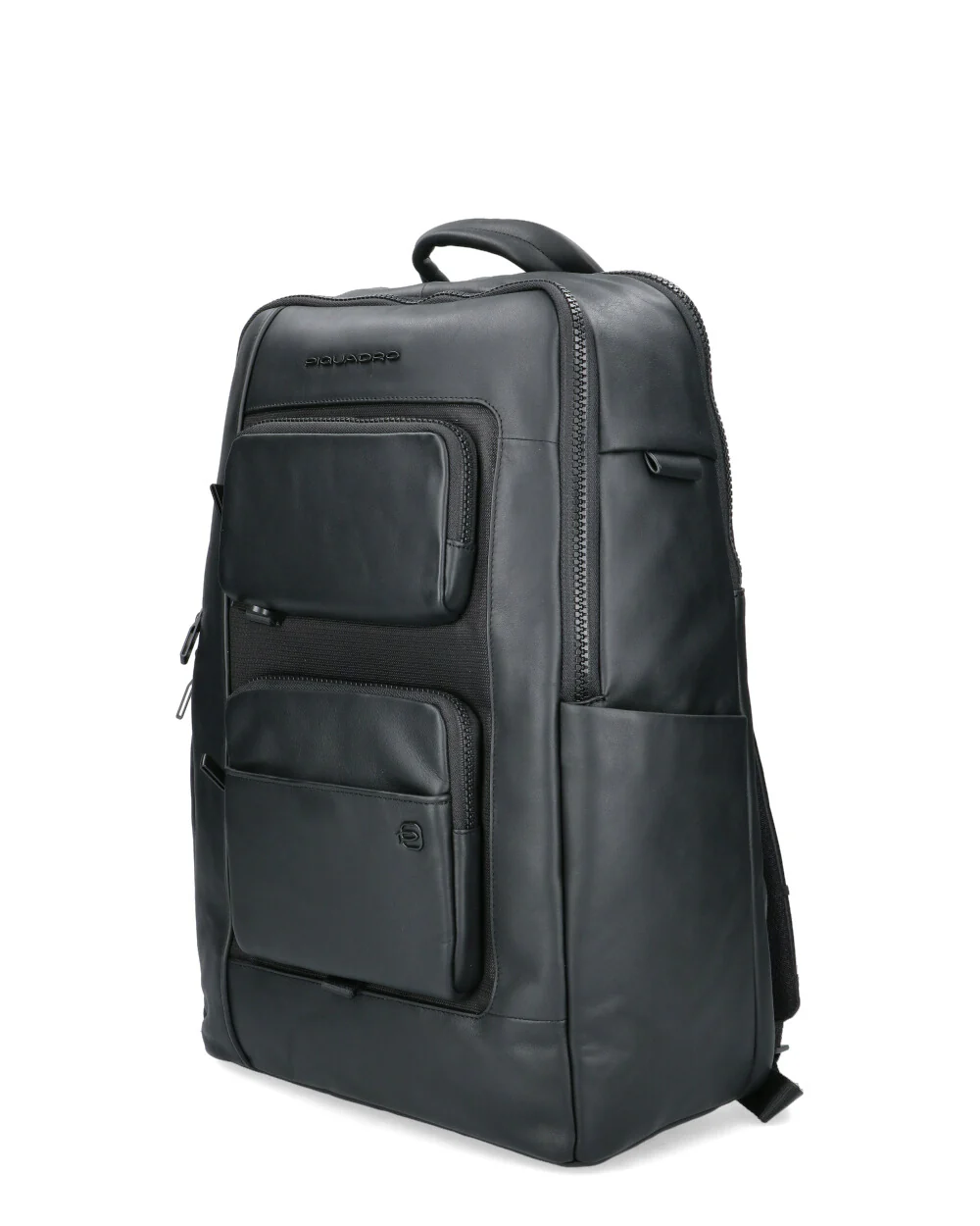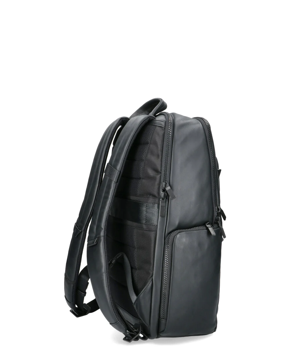 Zaino uomo porta pc e iPad®Pro 12,9″ in tessuto riciclato e pelle con protezioni antiurto e anti frode RFID e aggancio per luce portatile da bici