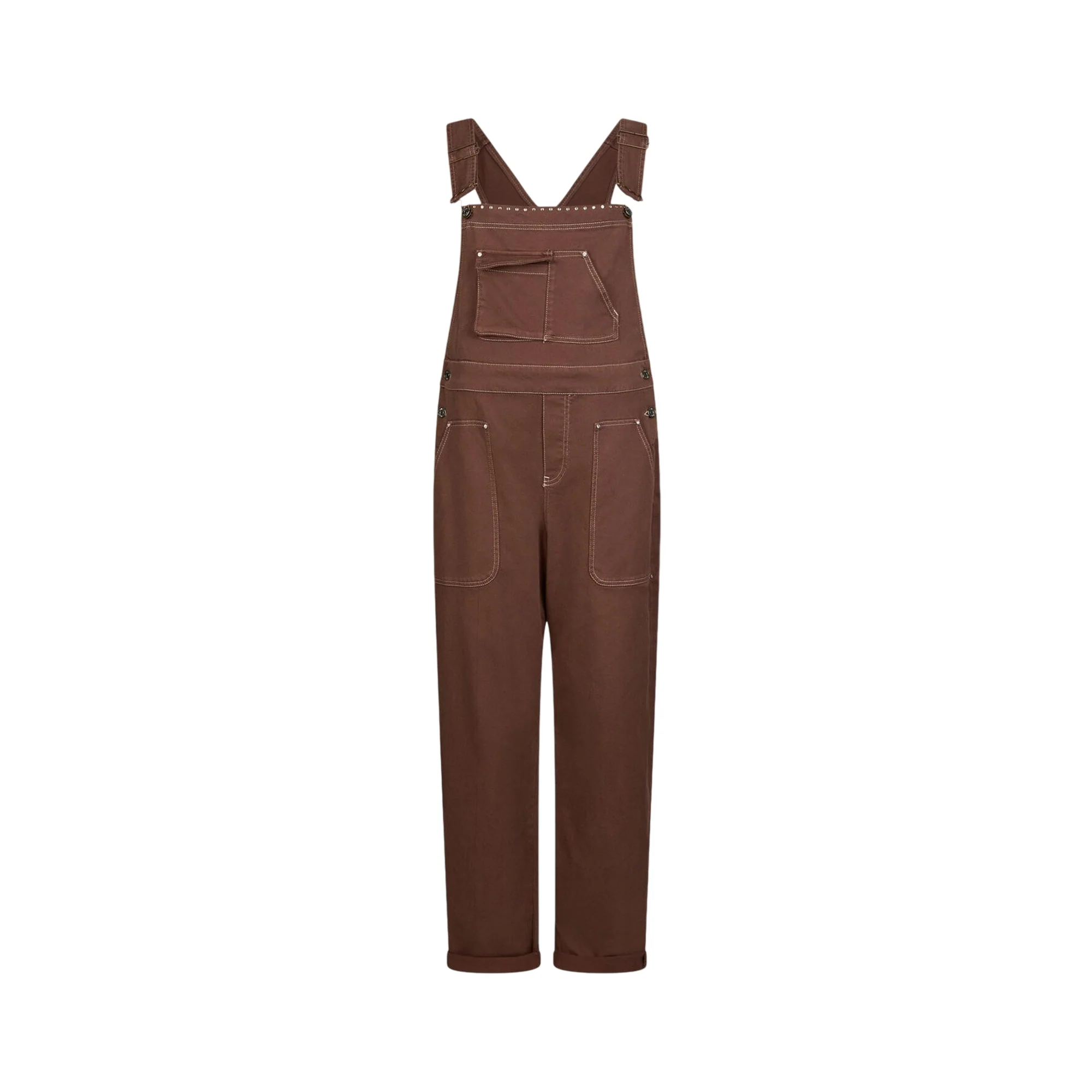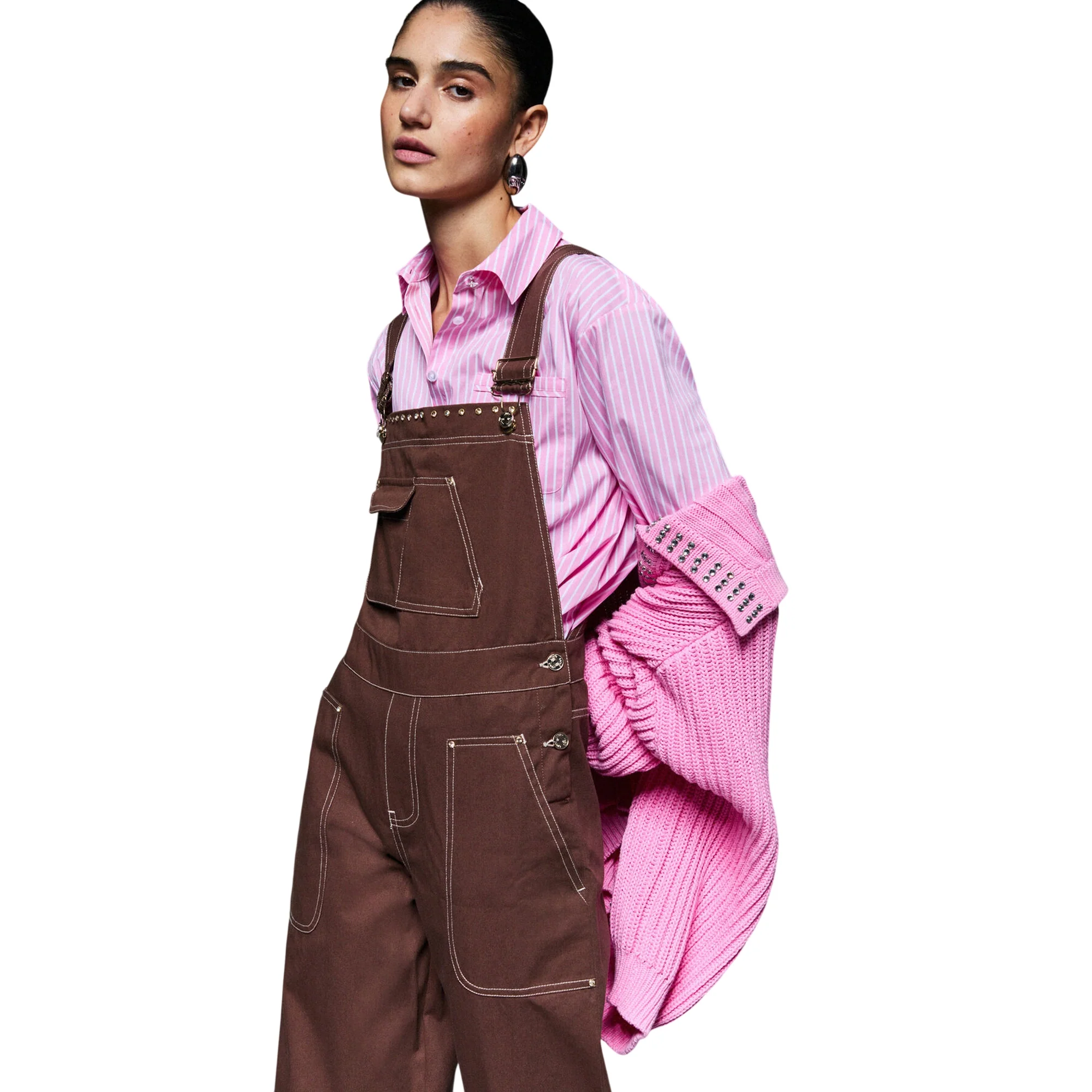 Grintosa ma super femminile, questa salopette marrone Liu Jo in bull di cotone reinterpreta lo stile worker in chiave glam. Il regular fit assicura una vestibilità rilassata e confortevole, perfetta per accompagnarti durante tutta la giornata. Le borchie applicate lungo la pettorina aggiungono un dettaglio luminoso e di carattere, mentre le maxi tasche enfatizzano l’anima utility del capo. Indossala con sneakers per un look casual e metropolitano oppure con sandali gioiello per un contrasto sorprendente e ultra fashion.