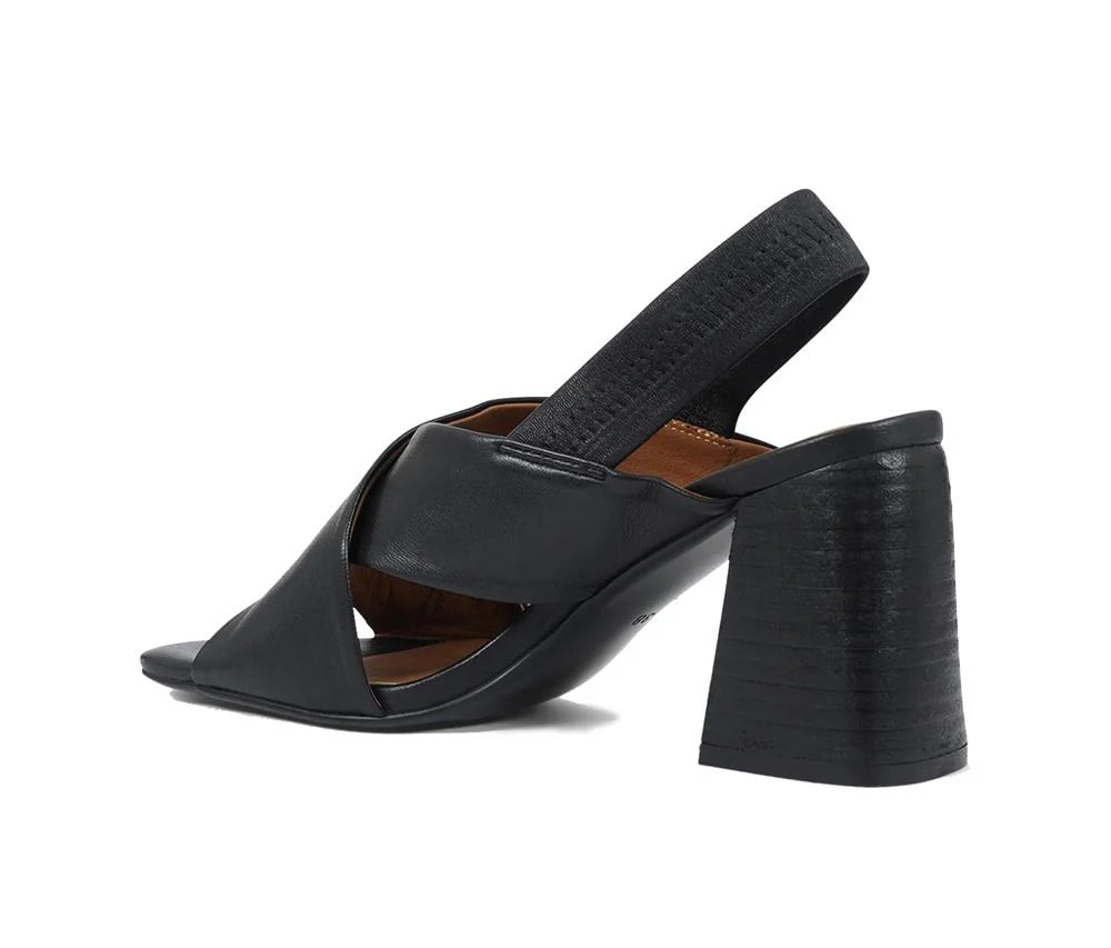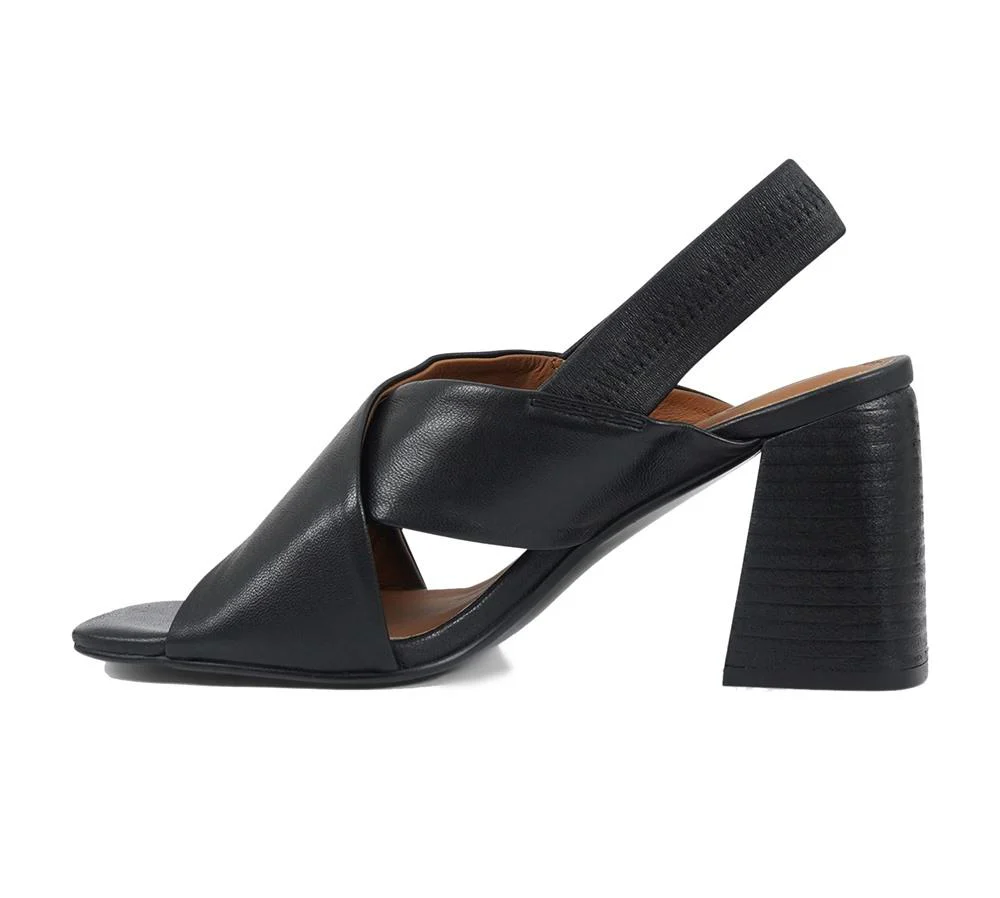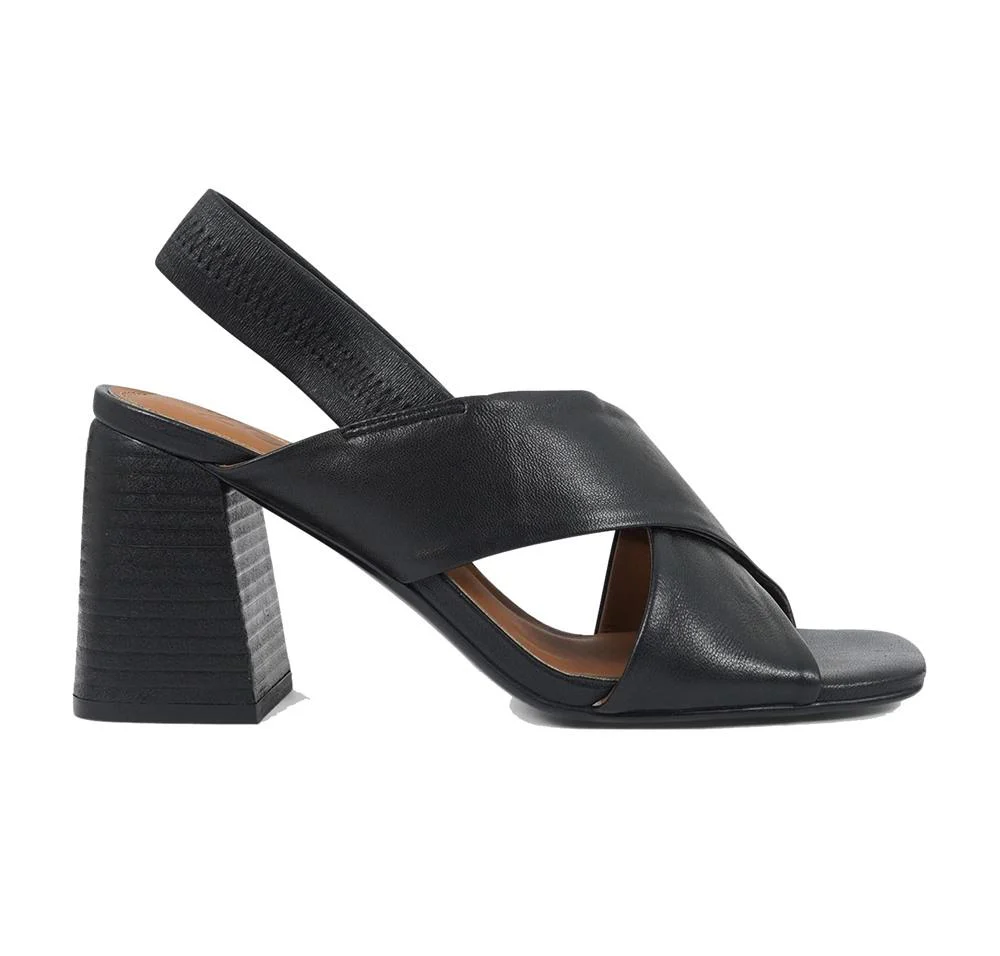 Primavera Estate 2024id. SOLEDAD03colore: nero Sandali in pelle con fascia incrociata sul davantie tacco a blocco di 9cm.Fascia elastica posteriore. Tabella numerin.35 = 2 UKn.36 = 3 UKn.37 = 4 UKn.38 = 5 UKn.39 = 6 UKn.40 = 11UKn.41 = 8 UK