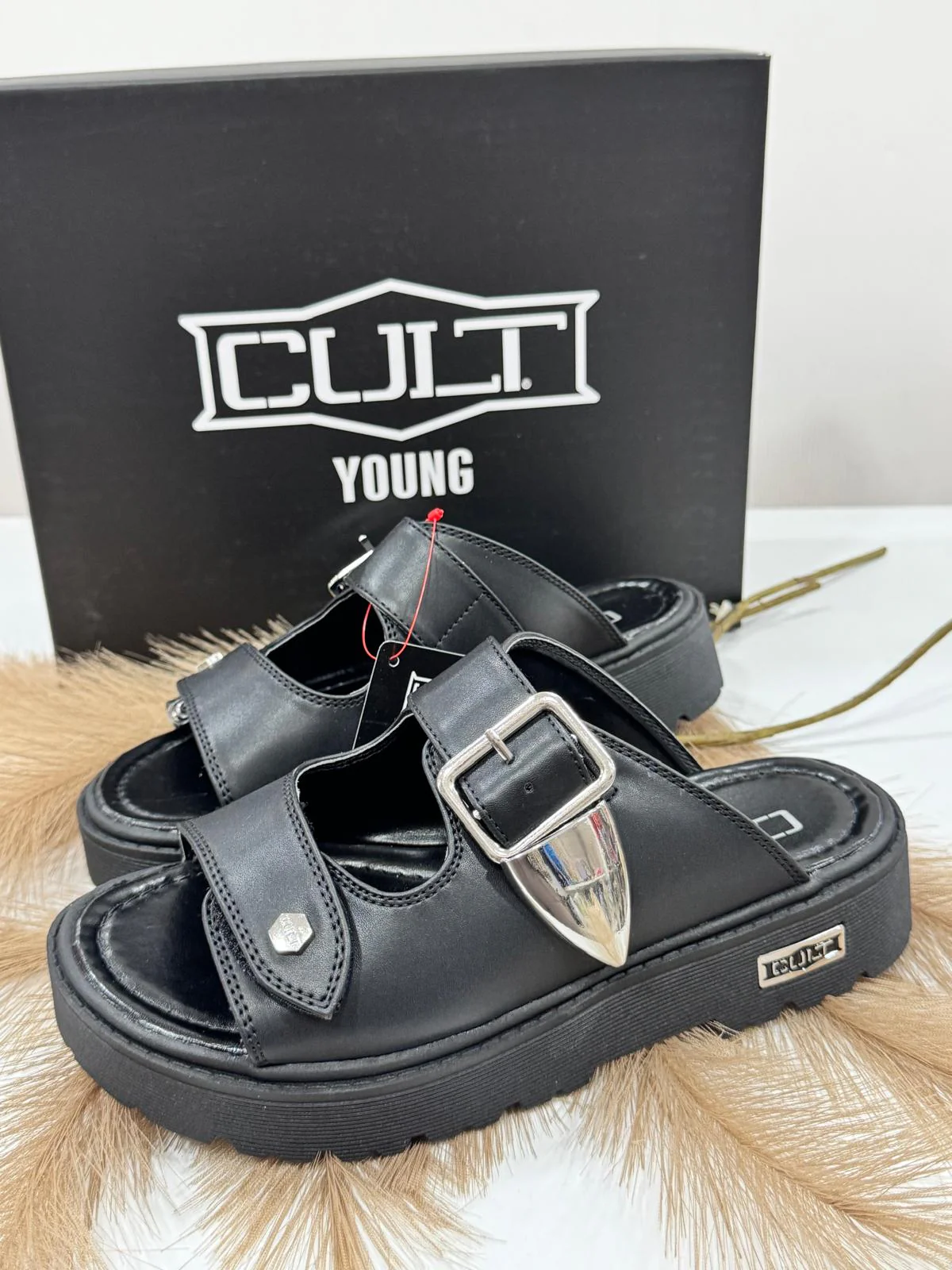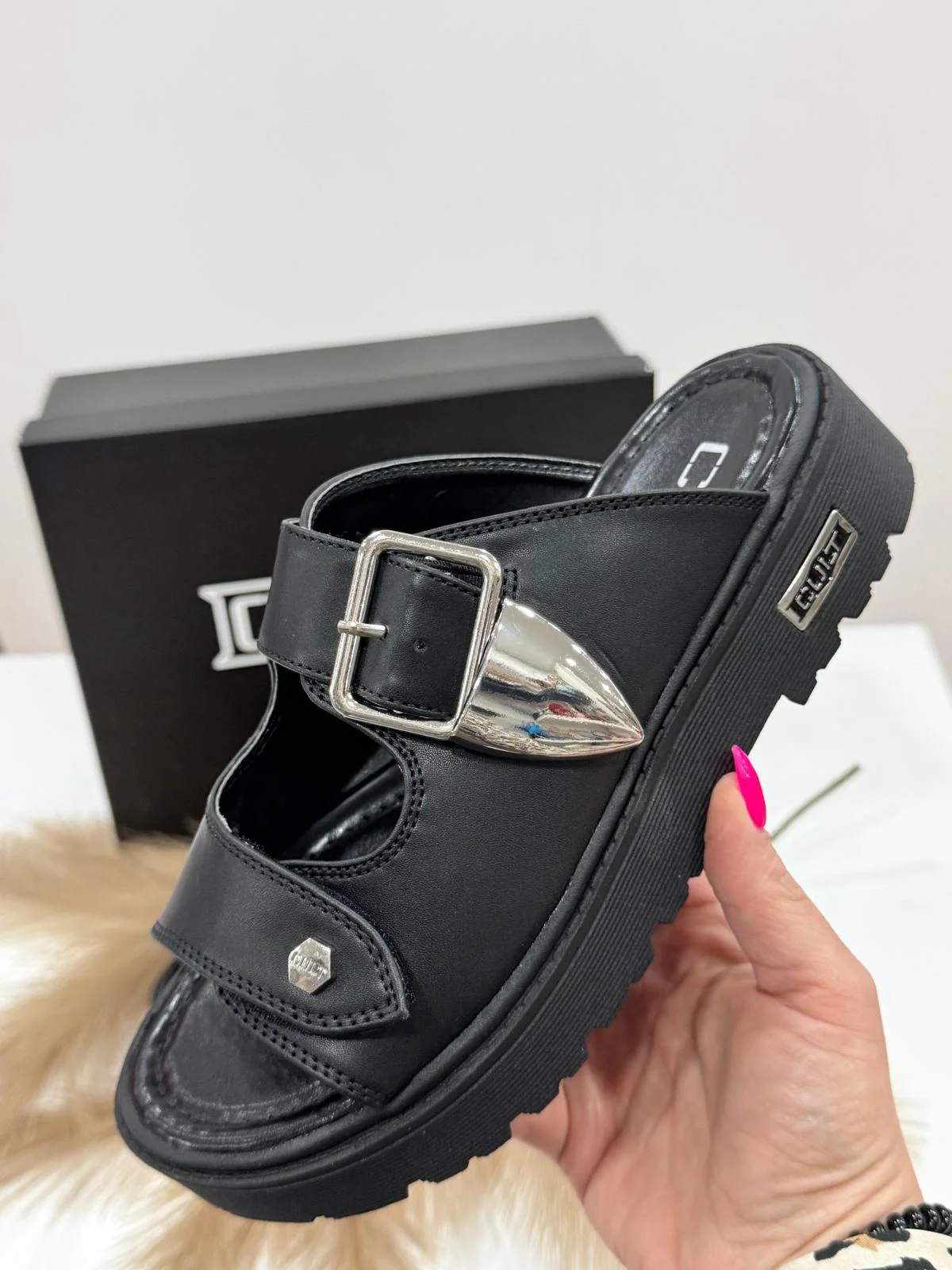 CIABATTA DOPPIA FIBBIA FONDO GOMMATO LOGO SUL FONDO