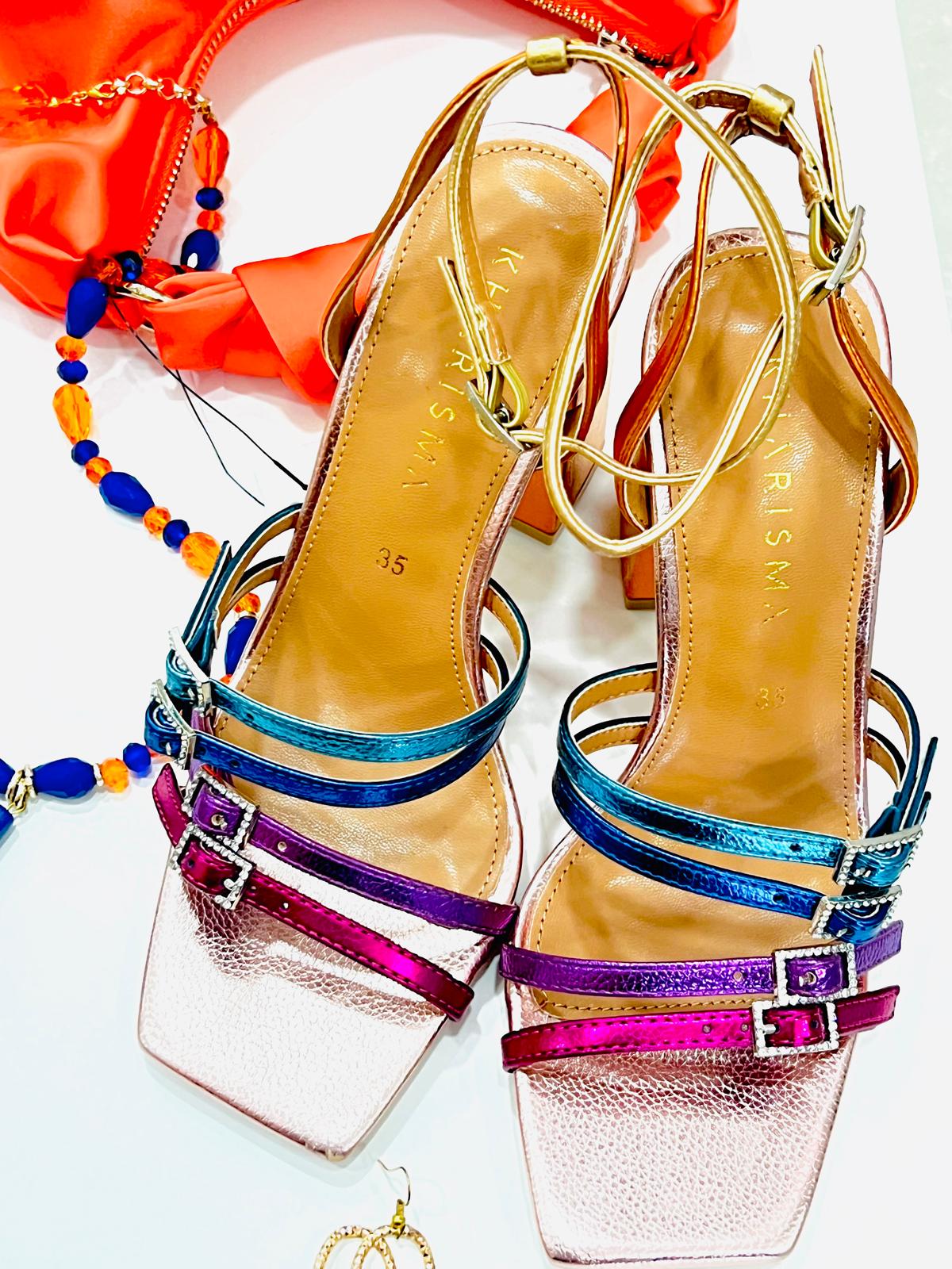 Essere fashion non è mai stato così facile! Rendi unici i tuoi outfit con i nuovissimi sandali arcobaleno: con tacco a blocco ,sarai l’indiscussa regina della moda, pronta per ogni occasione!