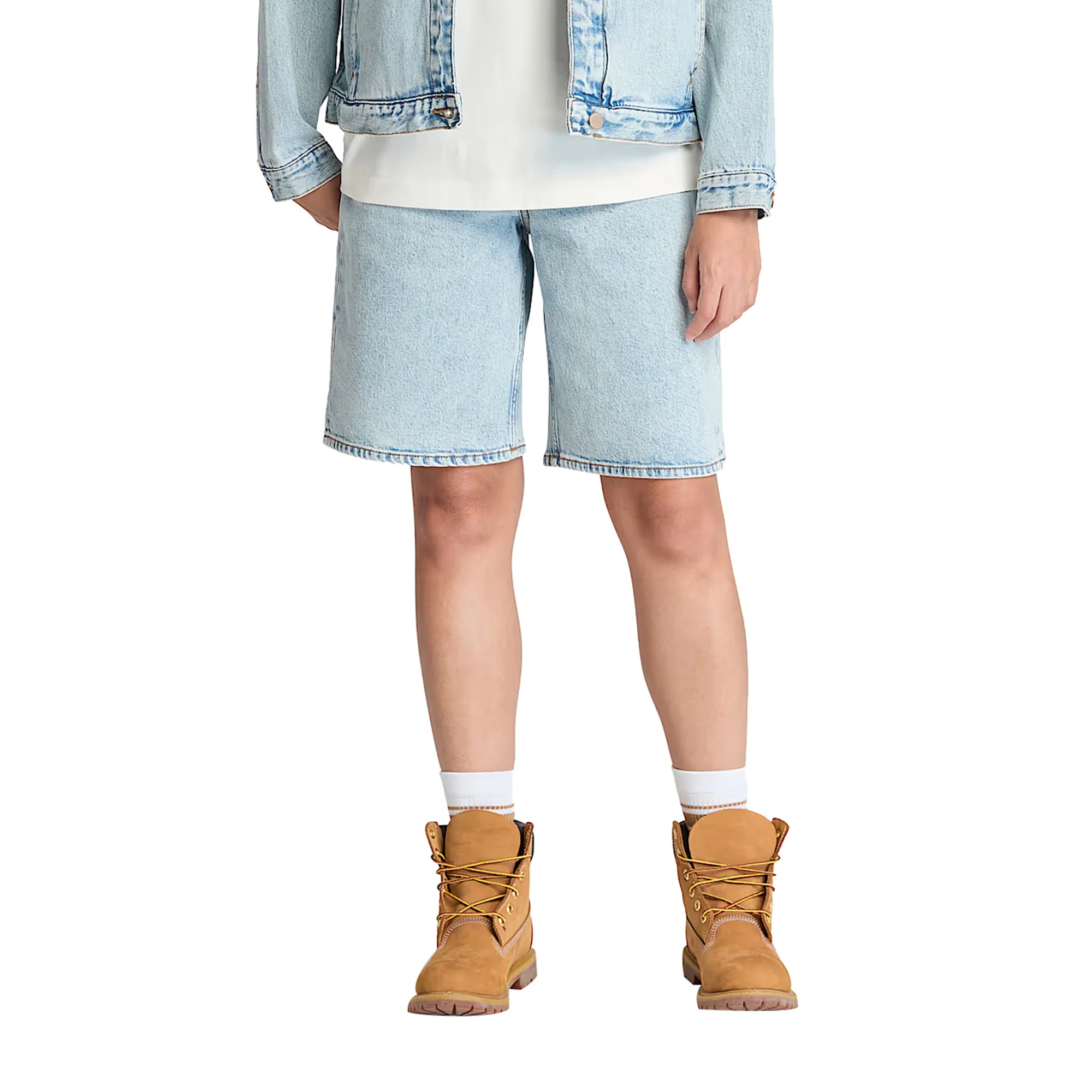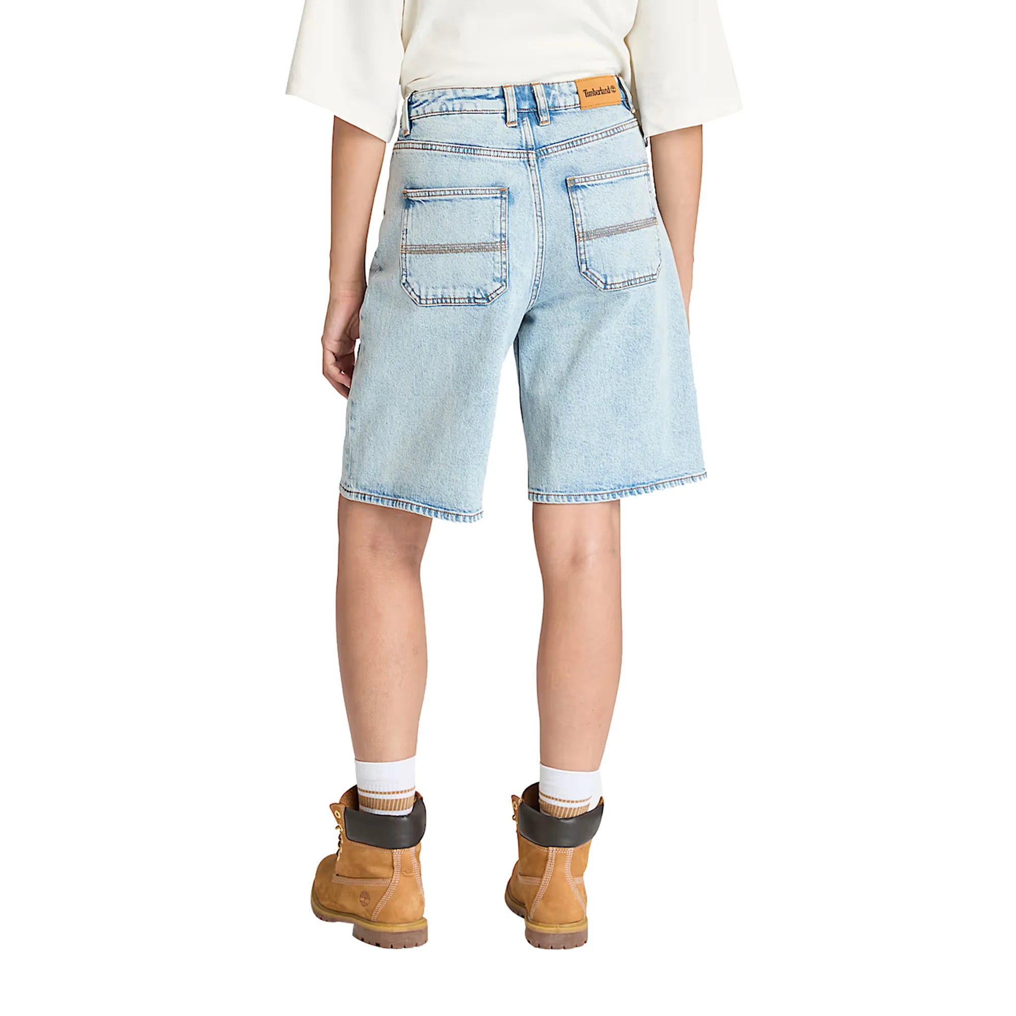 Questi Shorts da donna in denim blu chiaro di Timberland realizzati in cotone e TENCEL™ Lyocell sono perfetti per essere comodi ed eleganti. Il tessuto TENCEL™ Lyocell con tecnologia REFIBRA™ è morbido e resistente, mentre la chiusura con bottone e patta garantisce una vestibilità perfetta. Grazie al taglio a vita alta e alle cinque tasche, avrai tutto il necessario a portata di mano.