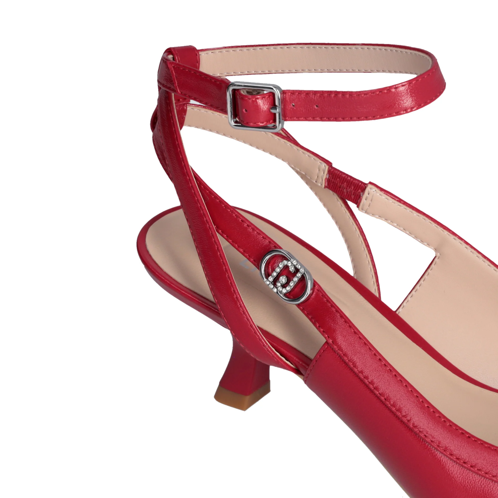 Scopri le iconiche Slingback con punta affusolata e cinturino alla caviglia regolabile di Liu Jo per un look elegante e alla moda. Il logo monogram con strass aggiunge un tocco di brillantezza, mentre il tacco basso a clessidra con logo garantisce comfort e stile. In iconico colore rosso per un look raffinato!