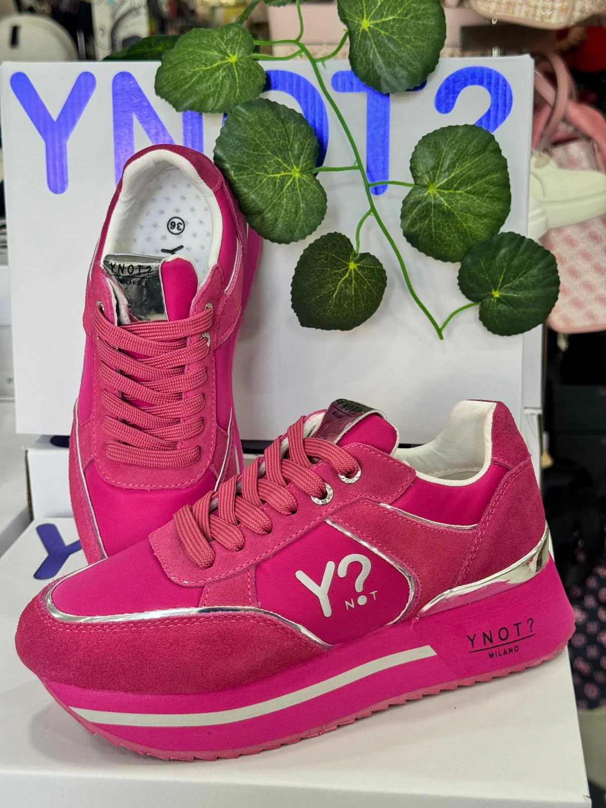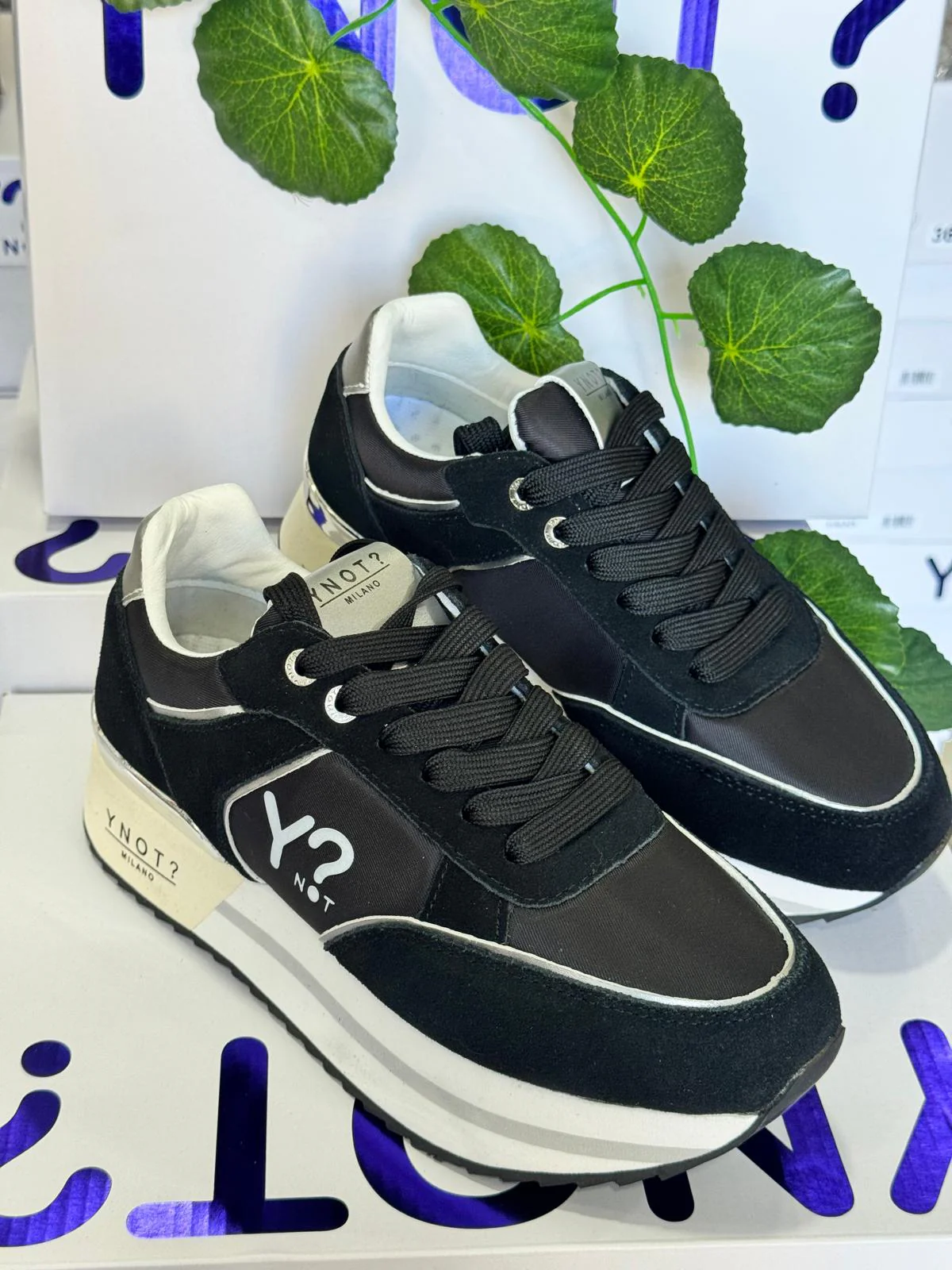 Sneakers da Donna in pelle e microfibra Sneakers da donna Chiusura con lacci Logo Ynot? laterale Fodera interna in tessuto traspirante e plantare estraibile in tessuto Suola in gomma