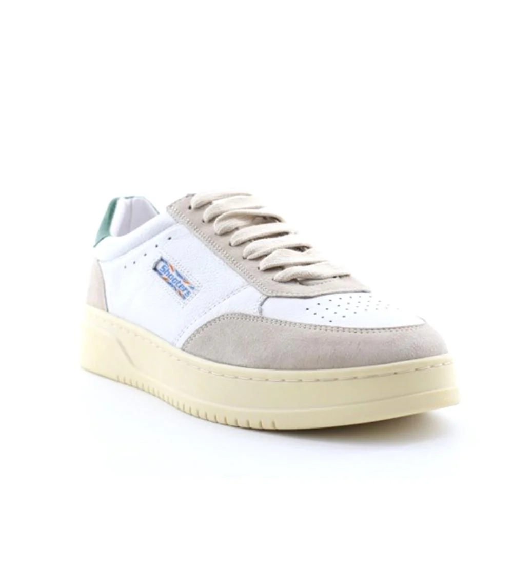 Primavera Estate 2024id. S5584colore: silver green Sneakers in pelle coninserti in suede e chiusuracon lacci.Logo sul lato e suola in gomma. Taglie:IT 40= UK 6IT 41= UK 7IT 42= UK 8IT 43= UK 9IT 44= UK 10IT 45= UK 12