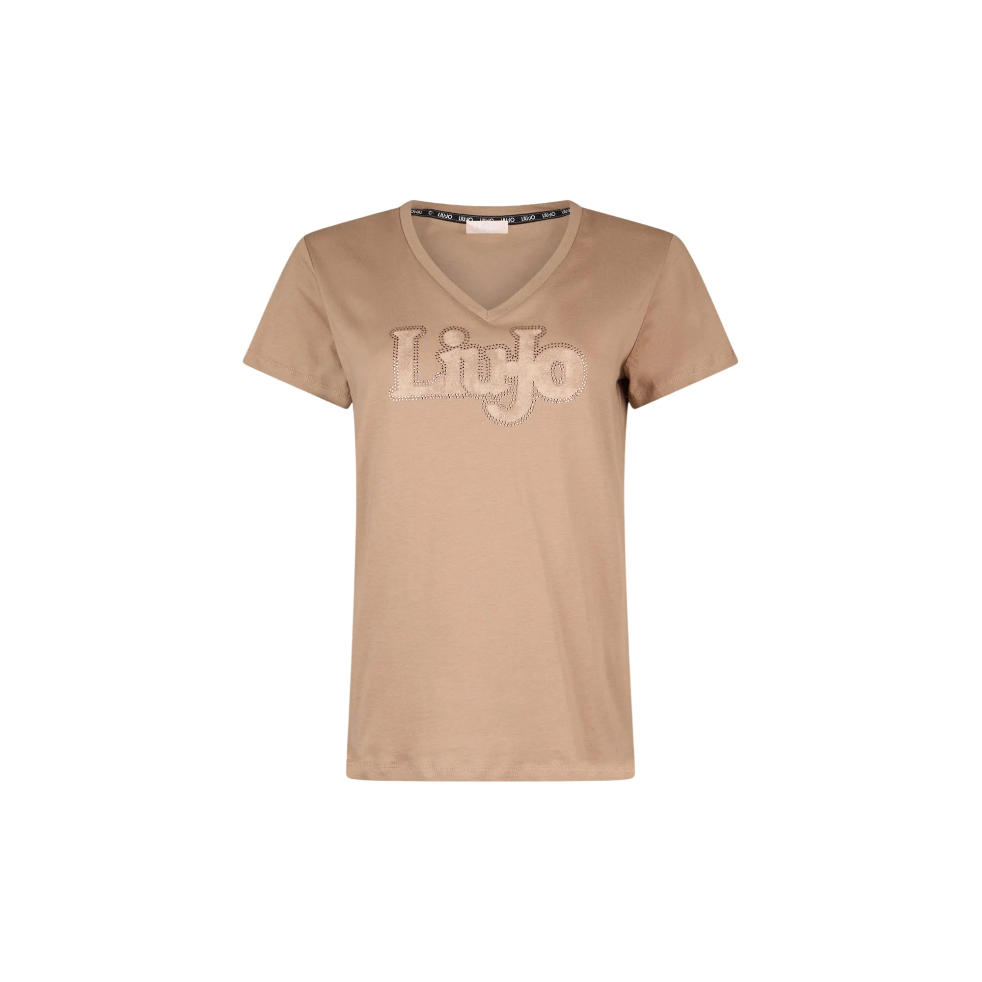 T-shirt in cotone jersey con scollo a V firmata Liu Jo che cattura lo sguardo. Il maxi logo impreziosito da strass scintillanti aggiunge un tocco di lusso e personalità al tuo look quotidiano. Parte della collezione “Liu Jo Better”, questa maglia beige combina comfort superiore con uno stile raffinato, perfetta per chi desidera distinguersi con semplicità e classe.