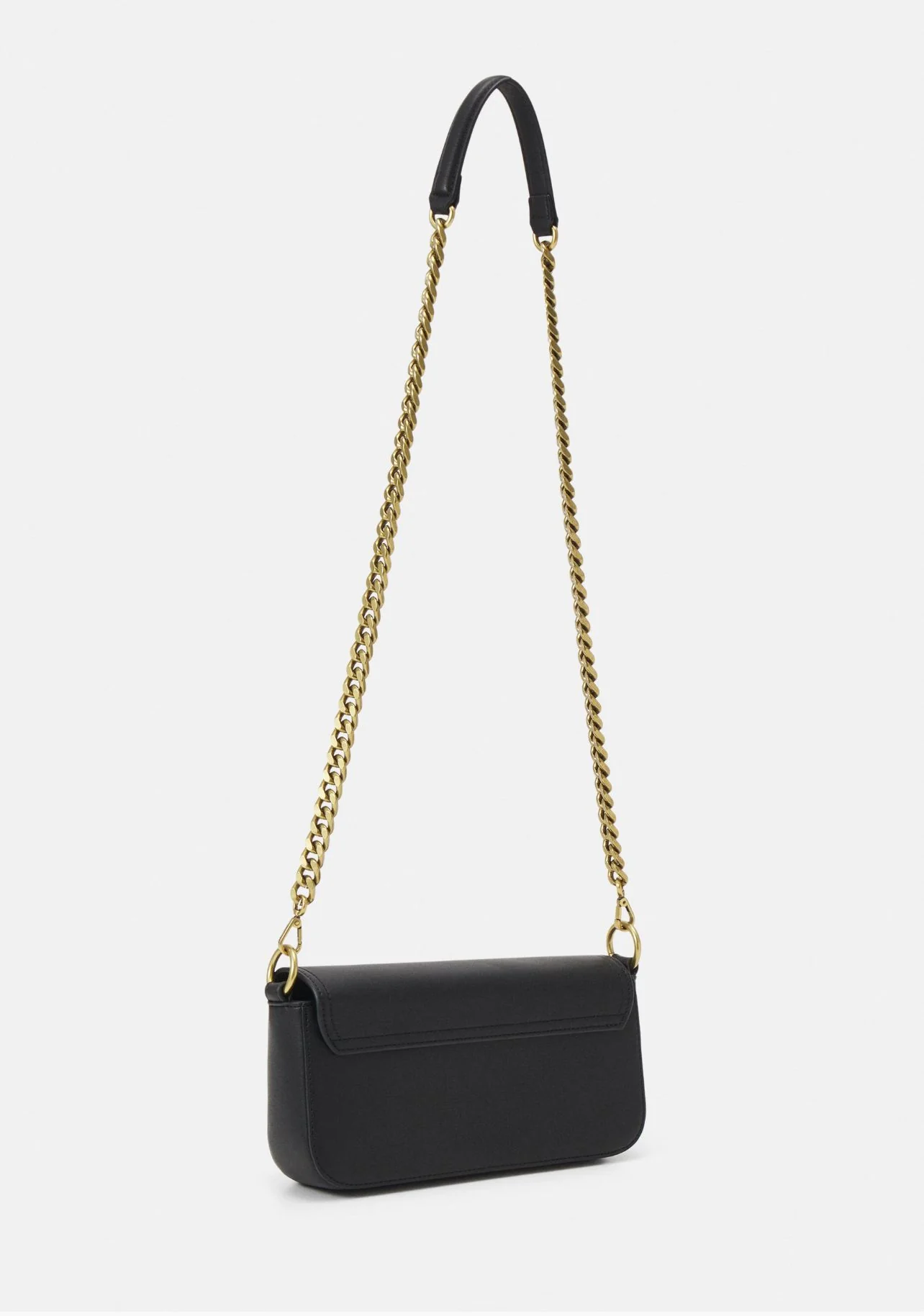 Elegante borsa a tracolla in morbida eco pelle con catena in metallo e chiusura magnetica frontale impreziosita da una placca dorata con logo e iconica testa di tigre.