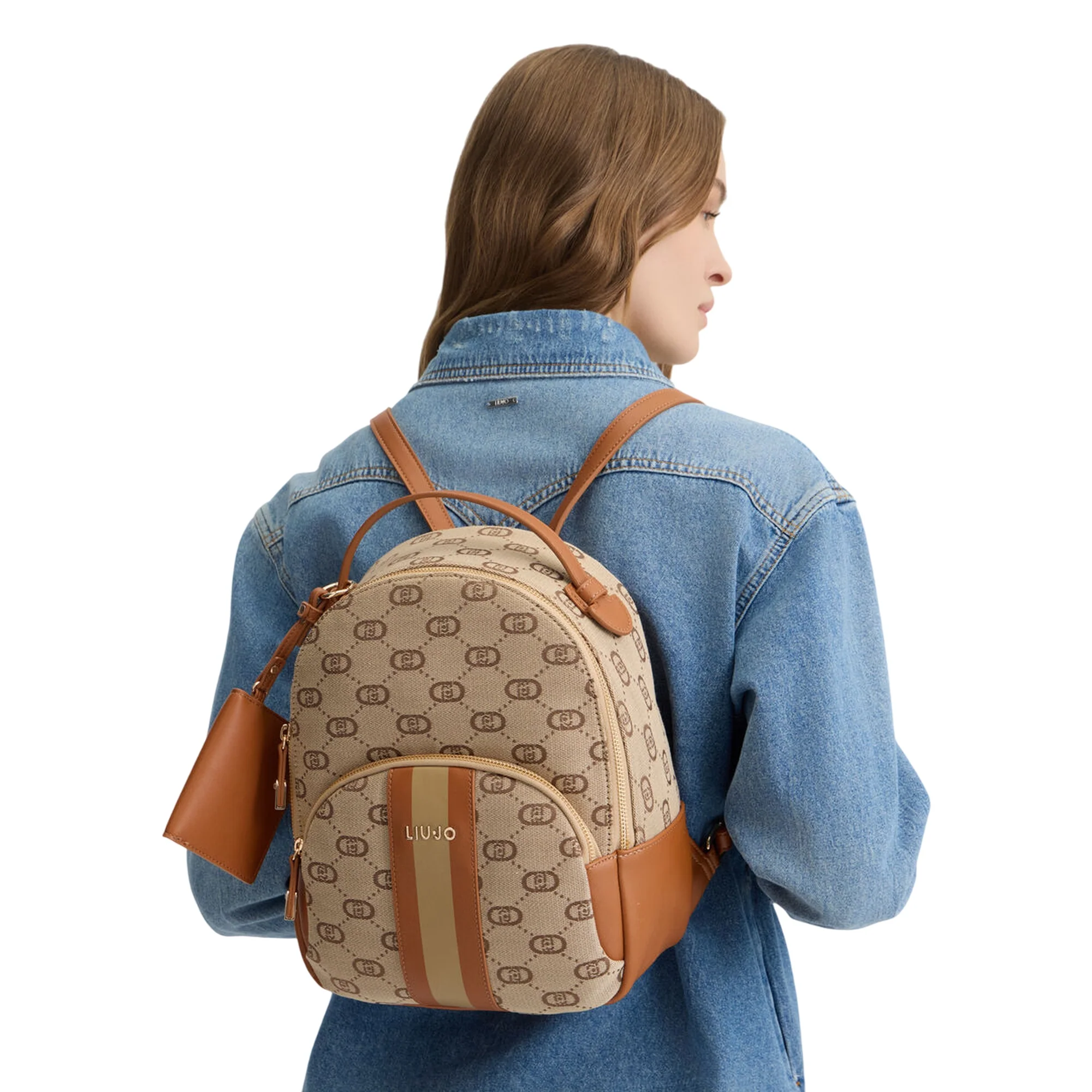 Questo Zainetto Liu Jo unisce stile e praticità per chi ama vivere la città con un tocco glam. Realizzato in tessuto jacquard beige con monogram all-over, offre due scomparti comodi e compatti, perfetti per organizzare tutto il necessario senza rinunciare all’eleganza. Ideale per chi cerca un accessorio versatile e di tendenza, capace di valorizzare ogni outfit con un dettaglio raffinato.